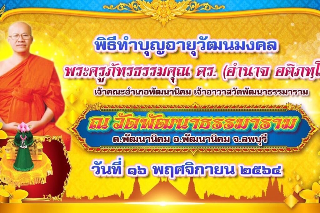 เข้าร่วมมุทิตาสักการะพระเดชพระคุณ พระครูภัทรธรรมคุณ ดร. (อำนาจ อติภทโท) เจ้าคณะอำเภอพัฒนานิคม เจ้าอาวาสวัดพัฒนาธรรมาราม จ.ลพบุรี