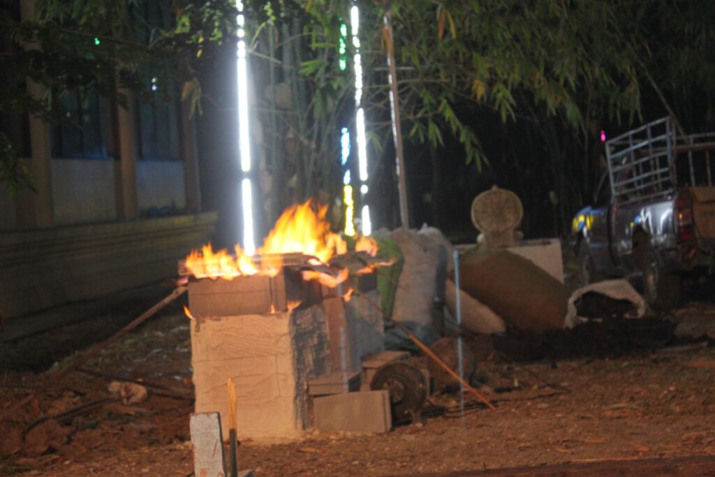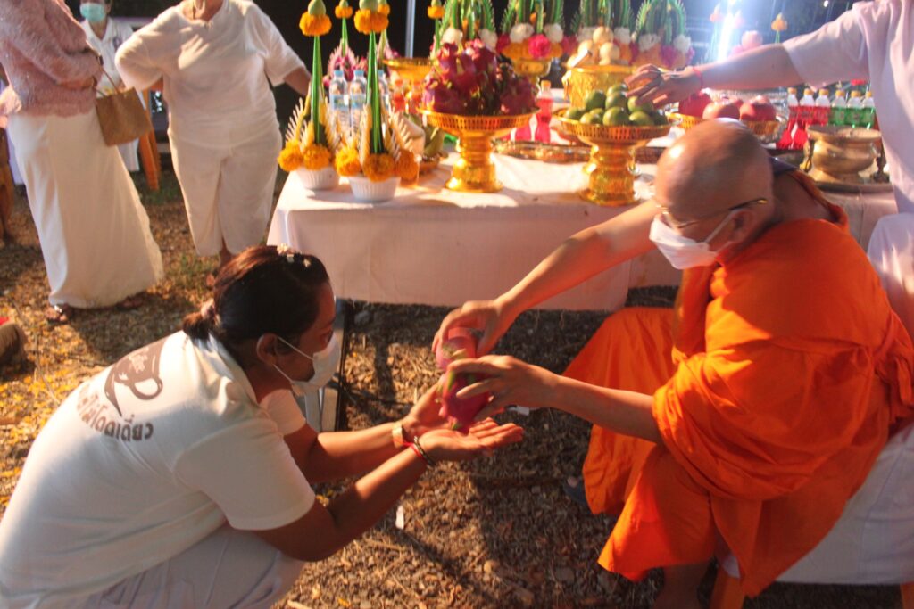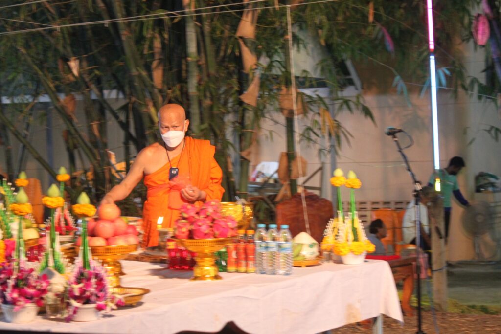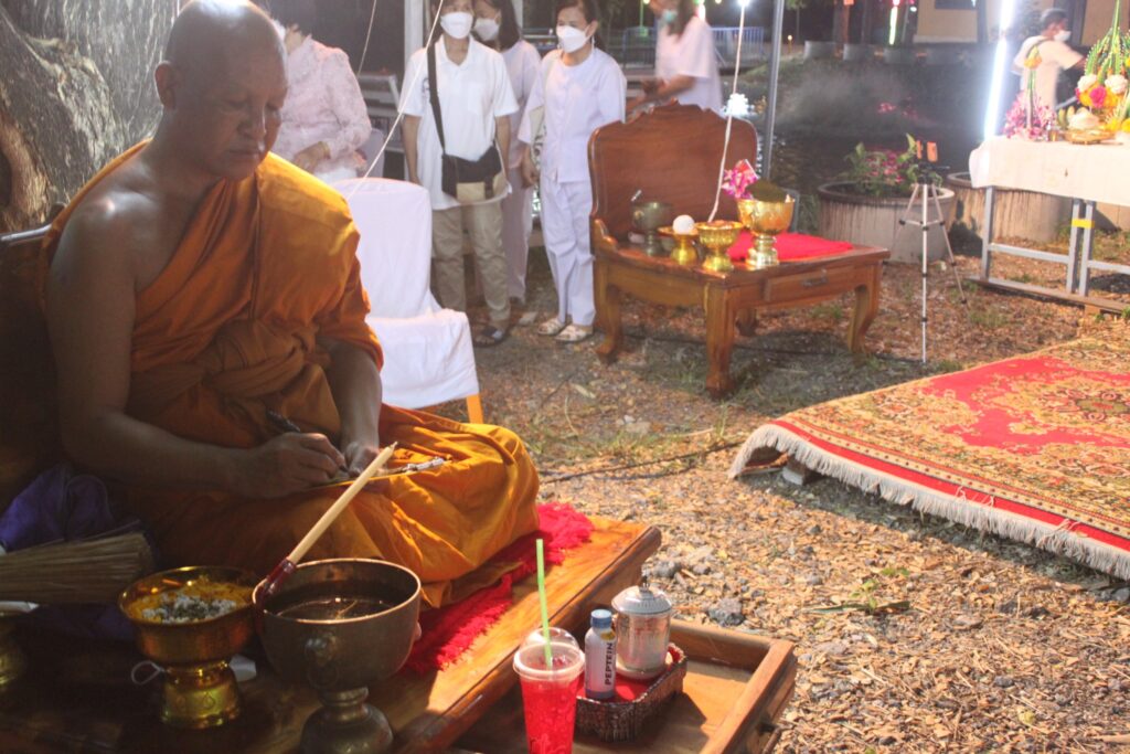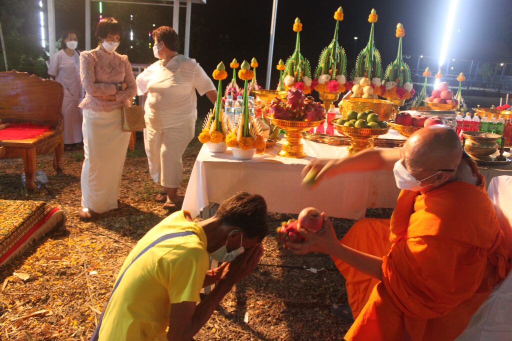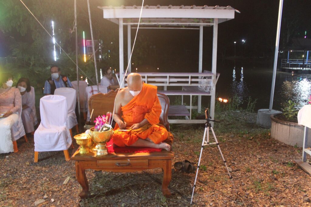 พระสงฆ์เจริญชัยมงคลคาถา ถวายเครื่องไทยธรรมแด่พระสงฆ์และพระคณาจารย์ พระสงฆ์ทรงสมณศักดิ์ อนุโมทนา ประธานในพิธีกรวดน้ำรับพร เป็นอันเสร็จพิธี”