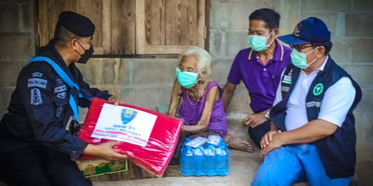 __เมื่อวันที่ 21-22 พฤศจิกายน 2564 ที่ จังหวัดเลย ผู้สื่อข่าวรายงานว่า กรมอุตุนิยมวิทยา คาดการณ์สภาพอากาศระหว่างวันที่ 18 – 24 พ.ย.64 โดยในช่วงวันที่ 18 – 21 พ.ย. 64 บริเวณความกดอากาศสูงที่ปกคลุมประเทศไทยตอนบนมีกำลังอ่อน ทำให้บริเวณประเทศไทยตอนบนมีฝนฟ้าคะนองบางแห่ง กับมีหมอกบางในตอนเช้า โดยยังคงมีอากาศเย็นในภาคเหนือ และภาคตะวันออกเฉียงเหนือ ซึ่ง พันเอก อุทัย นิลเนตร ผู้บังคับการกรมทหารพรานที่ 21/ผู้บังคับหน่วยเฉพาะกิจกรมทหารพรานที่ 21 และคุณสิริกัญญา นิลเนตร ประธานสมาคมแม่บ้านทหารบก สาขา กรมทหารพรานที่ 21 เป็นห่วงพี่น้องประชาชนตามแนวชายแดนแม่น้ำโขง 21 จึงได้นำกำลังพลพร้อมชุดปฏิบัติการ “Army Delivery พราน 21 ต้านภัยหนาว” ซึ่งกองทักบก กองกำลังสุรศักดิ์มนตรี โดย หน่วยเฉพาะกิจกรมทหารพรานที่ 21 ร่วมพลังกับ 7 บริษัทเอกชนในพื้นที่จังหวัดเลย นำทีมโดย บริษัท เลยรวมช่าง(1987) จำกัด,บริษัท โกลเด้นวิลล์ดีเวลล๊อปเม้นท์จำกัด,บริษัท จีดีเฮ้าท์ 2020 จำกัด,บริษัท 99 หลังคาเหล็ก จำกัด,บริษัทห้างทองเยาราช 99 เลย จำกัด,บริษัทห้างทองเยาวราช 99.99 จำกัด และ LAB Tea&Coff 3/3LAB House สร้างสังคมแห่งการให้และแบ่งปันให้กับประชาชนและกำลังพลที่ปฏิบัติงานตามพื้นที่ชายแดน โดยร่วมกับ โรงพยาบาลส่งเสริมสุขภาพตำบล ผู้นำชุมชน อาสาสมัครสาธารณสุข ประจำหมู่บ้าน(อสม.) ในพื้นที่ ต.หนองเดิ่น อ.บุ่งคล้า จ.บึงกาฬ ส่งมอบผ้าห่มกันหนาว ข้าวสารอาหารแห้ง ของใช้ในครัวเรือน บรรเทาความเดือดร้อนให้กับประชาชนในพื้นที่รับผิดชอบ ตามโครงการ “Army Delivery พราน 21 ต้านภัยหนาว” สนองตอบนโยบายของ “กองทัพบก” ที่ให้หน่วยขึ้นตรงกองทัพบก ดำเนินการดูแลช่วยเหลือประชาชนที่ได้รับผลกระทบจากสถานการณ์ของเชื้อไวรัส โคโรนา 2019 (COVID-19) อย่างต่อเนื่อง และประเทศไทยได้เข้าสู่ช่วงฤดูหนาว จึงได้นำรถจักรยานยนต์ติดกล่อง “Army Delivery พราน 21” บุกถึงหน้าบ้านส่งถึงมือให้กับประชาชนผู้สูงอายุ ผู้มีโอกาสน้อยทางสังคม ผู้พิการ รวมถึงผู้ป่วยติดเตียง ในพื้นที่ ต.หนองเดิ่น อ.บุ่งคล้า จ.บึงกาฬ สร้างรอยยิ้มที่อบอุ่น จากพี่น้องประชาชน ทำให้ประชาชนเชื่อมั่นและศรัทธาในกองทัพบกมากขึ้น กับคำกล่าวที่ว่า “กองทัพบก เป็นที่พึ่งของประชาชนในทุกโอกาส” “เพราะเราคือทหารพรานลูกอีสาน หัวใจเพื่อประชาชน”