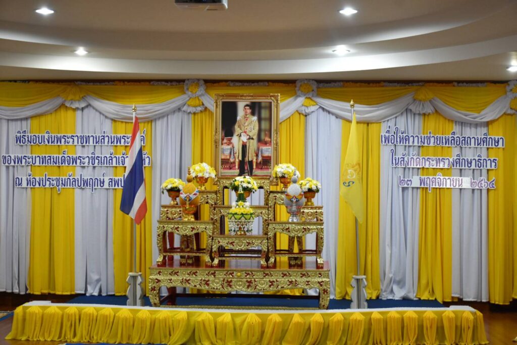 วันที่ 23 พฤศจิกายน 2564 ณ ห้องประชุมกัลปพฤกษ์ สำนักงานเขตพื้นที่การศึกษาประถมศึกษาสตูล นายเอกรัฐ หลีเส็น ผู้ว่าราชการจังหวัดสตูล เป็นประธานในพิธีมอบเงินพระราชทานของพระบาทสมเด็จพระวชิรเกล้าเจ้าอยู่หัว เพื่อให้ความช่วยเหลือสถานศึกษาในสังกัดกระทรวงศึกษาธิการที่ร่วมมือกับหน่วยงานต่าง ๆ ปรับสถานศึกษาเป็นโรงพยาบาลสนาม หรือสถานที่กักตัวหรือศูนย์พักคอย ให้แก่ผู้ป่วยจากโรคติดเชื้อไวรัสโคโรนา (COVID-19) โดยมีนายอภิปราย โสภายิ่ง รองผู้อำนวยการสำนักงานเขตพื้นที่การศึกษาประถมศึกษาสตูล ผู้บริหารสถานศึกษา ครู อาจารย์ และหัวหน้าส่วนราชร่วมพิธี