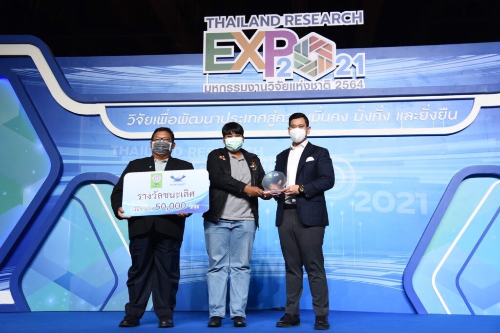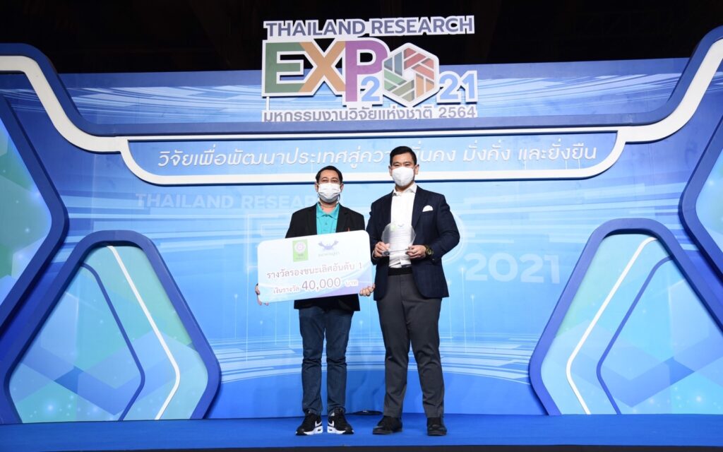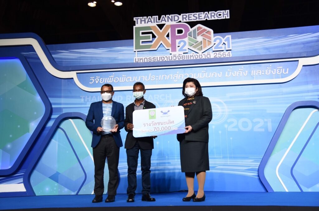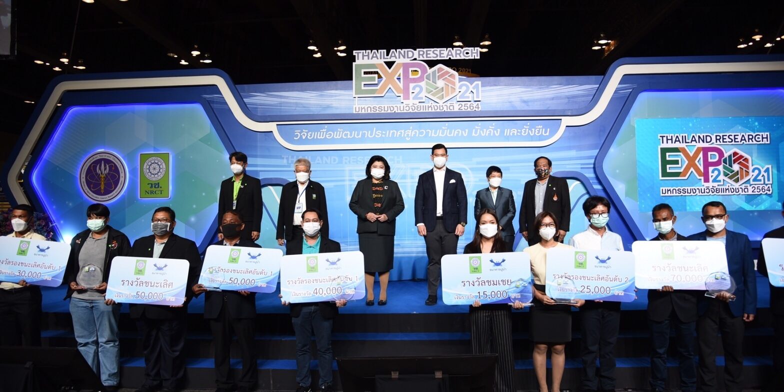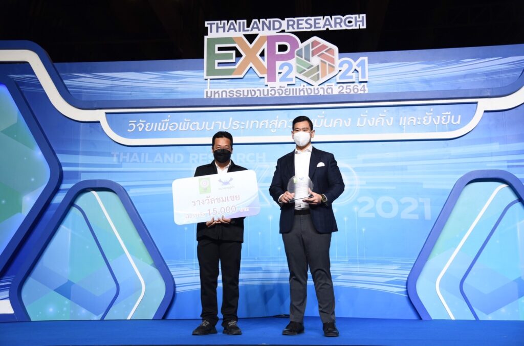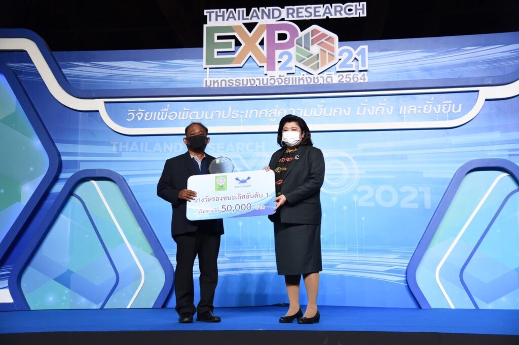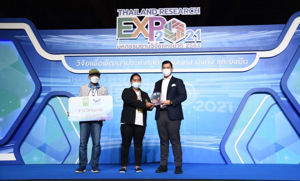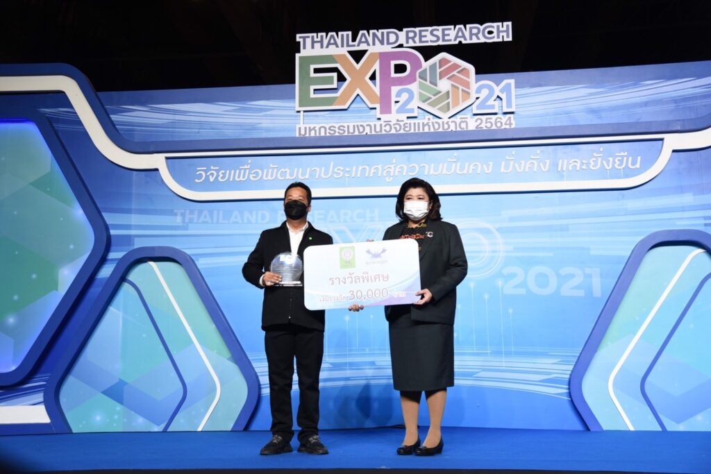 โดยมี ดร.วิภารัตน์ ดีอ่อง ผู้อำนวยการสำนักงานการวิจัยแห่งชาติ กล่าวรายงาน และมีนางสาวสุกัญญา ธีระกูรณ์เลิศ ผู้ทรงคุณวุฒิ และประธานคณะทำงานขยายผลธนาคารปูม้า นายสมบูรณ์ วงศ์กาด อดีตรองเลขาธิการสำนักงานคณะกรรมการพิเศษเพื่อประสานงานโครงการอันเนื่องมาจากพระราชดำริ (สำนักงาน กปร.) ผู้ช่วยศาสตราจารย์ ดร.อภิรักษ์ สงรักษ์ รองอธิการบดีมหาวิทยาลัยเทคโนโลยีราชมงคลศรีวิชัย และนายสุชัช ศุภวัฒนาเจริฐ หัวหน้าภารกิจการวิจัยและนวัตกรรมของประเทศด้านสัตว์เศรษฐกิจ เข้าร่วมในพิธีมอบรางวัลฯ ณ เวที Highlight Stage ในงานมหกรรมงานวิจัยแห่งชาติ 2564 (Thailand Research Expo 2021) โรงแรมเซ็นทาราแกรนด์และบางกอกคอนเวนชันเซ็นเตอร์ เซ็นทรัลเวิลด์ กรุงเทพมหานคร