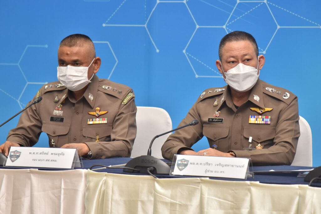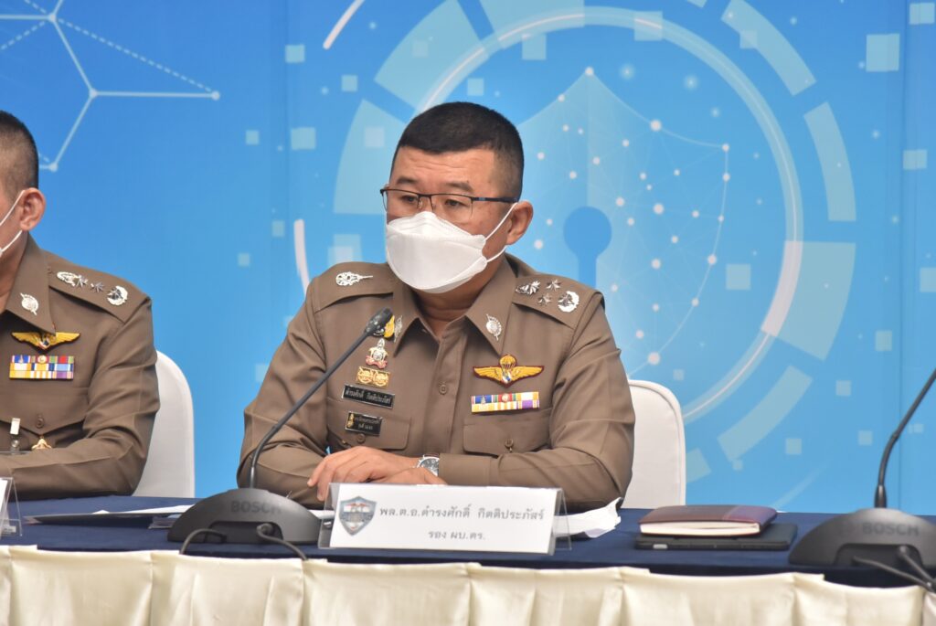 เมื่อวันที่ 23 พ.ย.64 เวลา 11.30 น. : พล.ต.อ.ดำรงศักดิ์ กิตติประภัสร์ รอง ผบ.ตร. ในฐานะผู้อำนวยการศูนย์ปราบปรามอาชญากรรมทางเทคโนโลยีสารสนเทศ สำนักงานตำรวจแห่งชาติ (ศปอส.ตร.) หรือ PCT พร้อมด้วย พล.ต.ท.ปรีชา เจริญสหายานนท์ ผู้ช่วย ผบ.ตร.,พล.ต.ท.ชยพล ฉัตรชัยเดช ผู้ช่วย ผบ.ตร.,พล.ต.ต.ไตรรงค์ ผิวพรรณ รอง ผบช.น,พล.ต.ต.พันธนะ นุชนารถ ผบก.สส.สตม. ร่วมกันแถลงผลการจับกุมผู้ต้องหาขบวนการหลอกลงทุนในแพลตฟอร์มคำสั่งซื้อ KING POWER (THAILAND)ความเสียหายกว่า 10ล้านบาท”