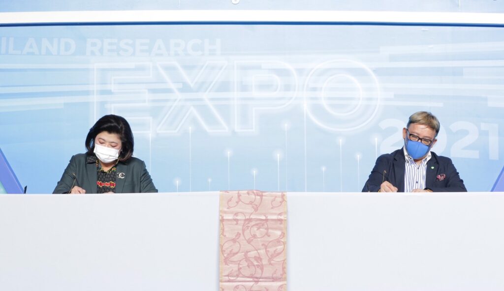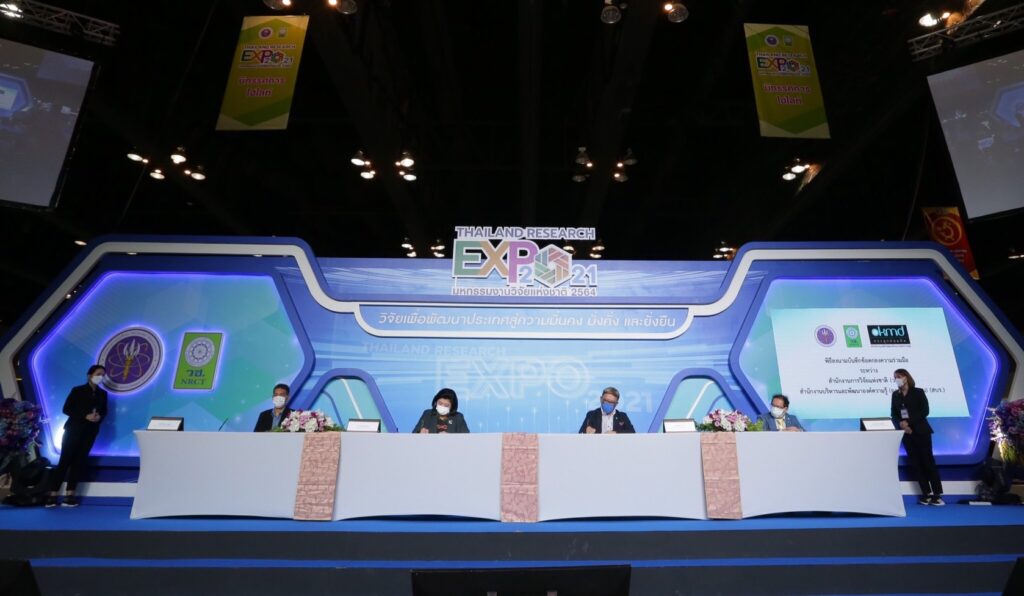 เมื่อช่วงเช้า วันที่ 24 พฤศจิกายน 2564 : สำนักงานการวิจัยแห่งชาติ (วช.) กระทรวงการอุดมศึกษา วิทยาศาสตร์ วิจัยและนวัตกรรม (อว.) จัดพิธีลงนามความร่วมมือการบริหารจัดการองค์ความรู้จากผลงานวิจัยและนวัตกรรม เพื่อคัดกรองชุดข้อมูลองค์ความรู้ การจัดทำเกณฑ์ในการคัดเลือกผลงานวิจัยร่วมกัน เผยแพร่ผ่านแพลตฟอร์มการเรียนรู้สาธารณะออนไลน์ กับ สำนักงานบริหารและพัฒนาองค์ความรู้ (องค์การมหาชนสบร.) ณ เวที Highlight Stage ในงานมหกรรมงานวิจัยแห่งชาติ 2564 (Thailand Research Expo 2021) โรงแรมเซ็นทาราแกรนด์และบางกอกคอนเวนชันเซ็นเตอร์ เซ็นทรัลเวิลด์ กรุงเทพมหานคร