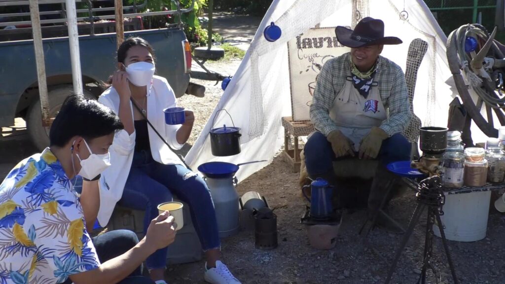 ที่บริเวณจุดชมวิวเขาค้อทะเลหมอก นักท่องเที่ยว ตลอดจนผู้ที่สัญจรผ่านไปมา ต่างต้องพากันสะดุดตา กับร้านกาแฟแห่งหนึ่ง ที่โดดเด่นไม่เหมือนใคร ด้วยการตกแต่งร้านตาม สไตด์คาวบอย พร้อมเปิดให้บริการกาแฟสด แก่บุคคลทุกเพศทุกวัย ในรูปแบบเปิดหมวก ภายใต้สโลแกน “จ่ายก็ได้ ไม่จ่ายก็ได้” จนหลายคนที่เห็น ต่างพากันแวะลองลิ้มชิมรสชาติ กาแฟสดสักแก้ว และได้ชมทะเลหมอกยามเช้า ท่ามกลางอากาศที่เย็นสบาย