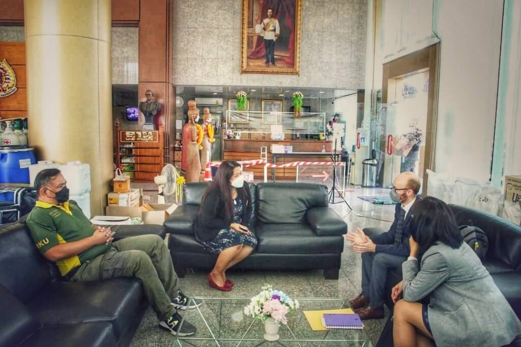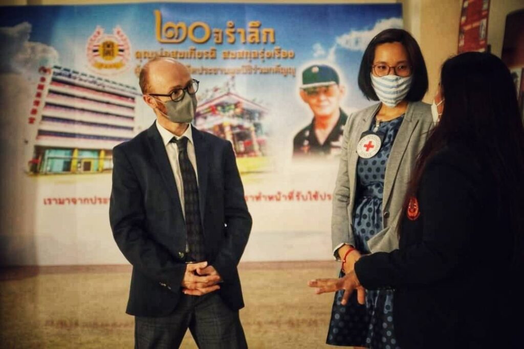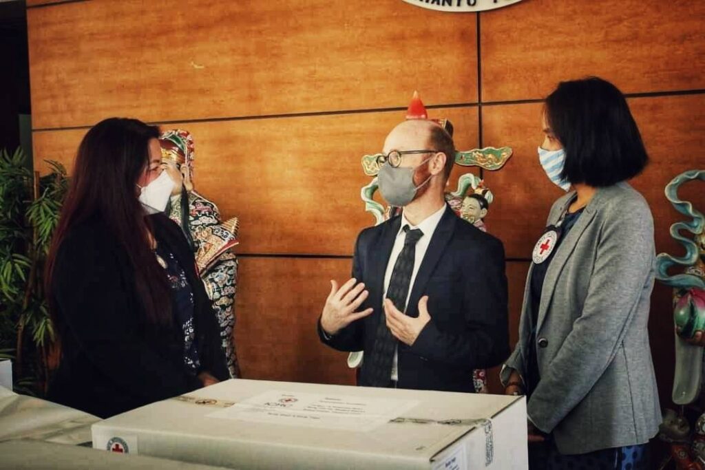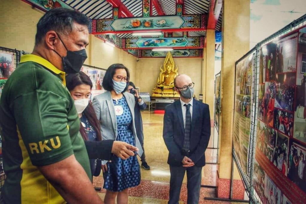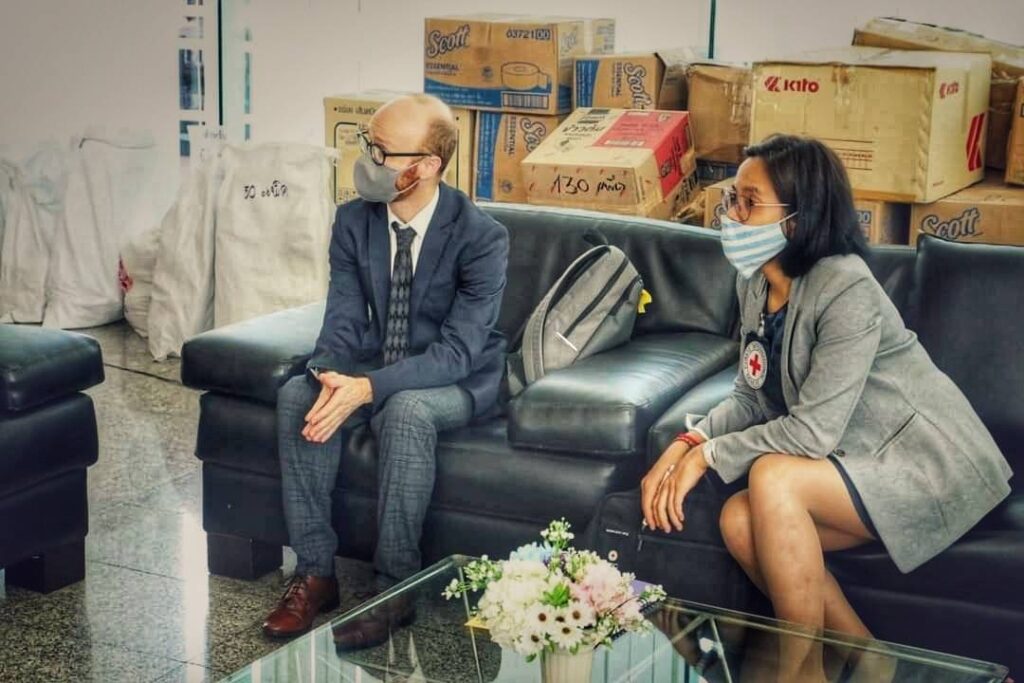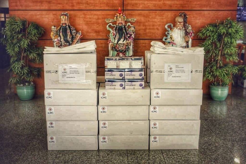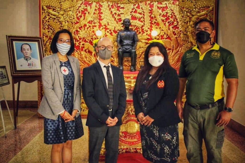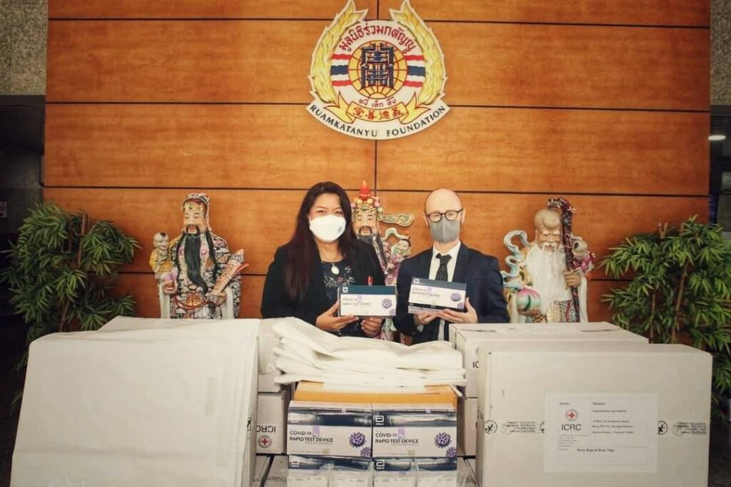 ในการนี้ คณะกรรมการกาชาดระหว่างประเทศ ประจำประเทศไทย (ICRC) โดยคุณโอราน ไฟน์แกน เป็นผู้แทนมอบ ชุดตรวจโควิด-19 แบบเร่งด่วน (Antigen Test Kit หรือ ATK) จำนวน 300 ชุด,ถุงบรรจุร่างผู้เสียชีวิต และป้ายชื่อ จำนวน 100 ชุด แก่ มูลนิธิร่วมกตัญญู เพื่อสนับสนุนการปฏิบัติงาน ช่วยเหลือผู้ประสบภัย