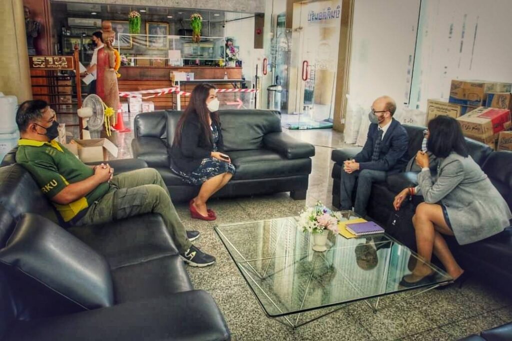 คุณ สกาวรัตน์ สมสกุลรุ่งเรือง เลขาธิการ พร้อมด้วย คุณฐิติกร เศวตนันทน์ รองผู้จัดการ ได้ให้การต้อนรับ คุณโอราน ไฟน์แกน ผู้เชี่ยวชาญด้านนิติวิทยาศาสตร์ และคุณบุณฑริก จำปาไทย เจ้าหน้าที่ฝ่ายความคุ้มครอง จากคณะกรรมการกาชาดระหว่างประเทศ ประจำประเทศไทย (ICRC) ที่เข้าพูดคุยแลกเปลี่ยนความคิดเห็น รวมถึงความร่วมมือระหว่างหน่วยงานในอนาคต พร้อมได้ เยี่ยมชมมูลนิธิร่วมกตัญญู