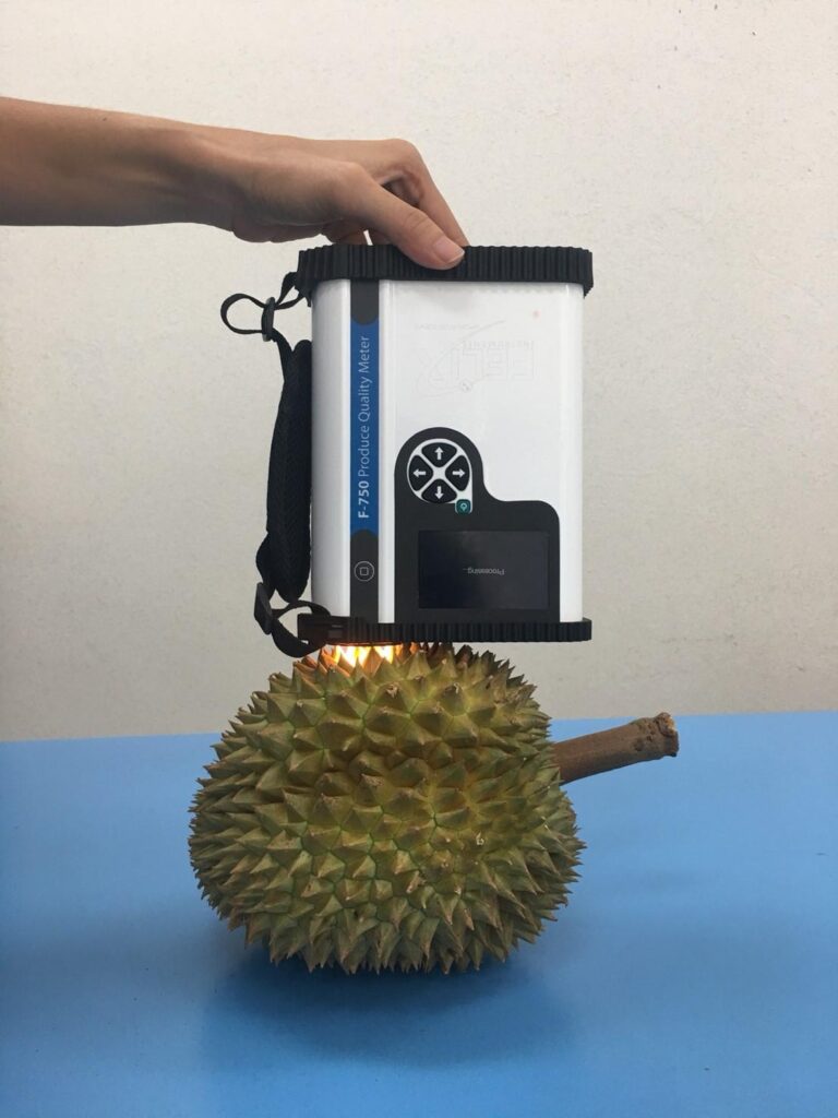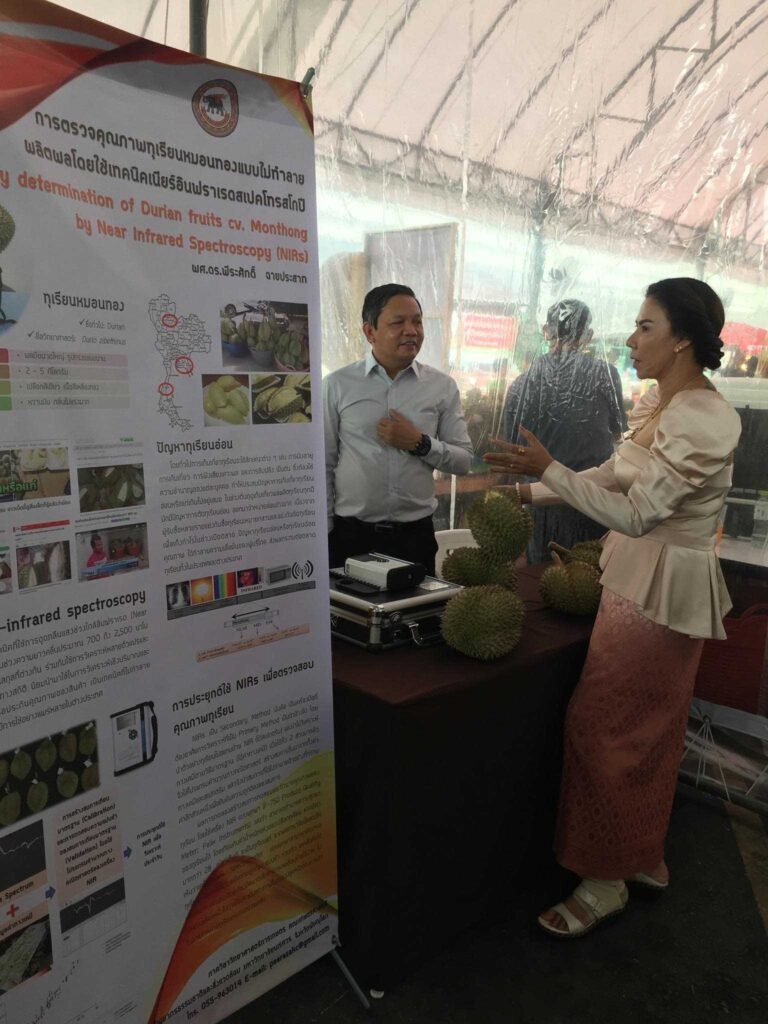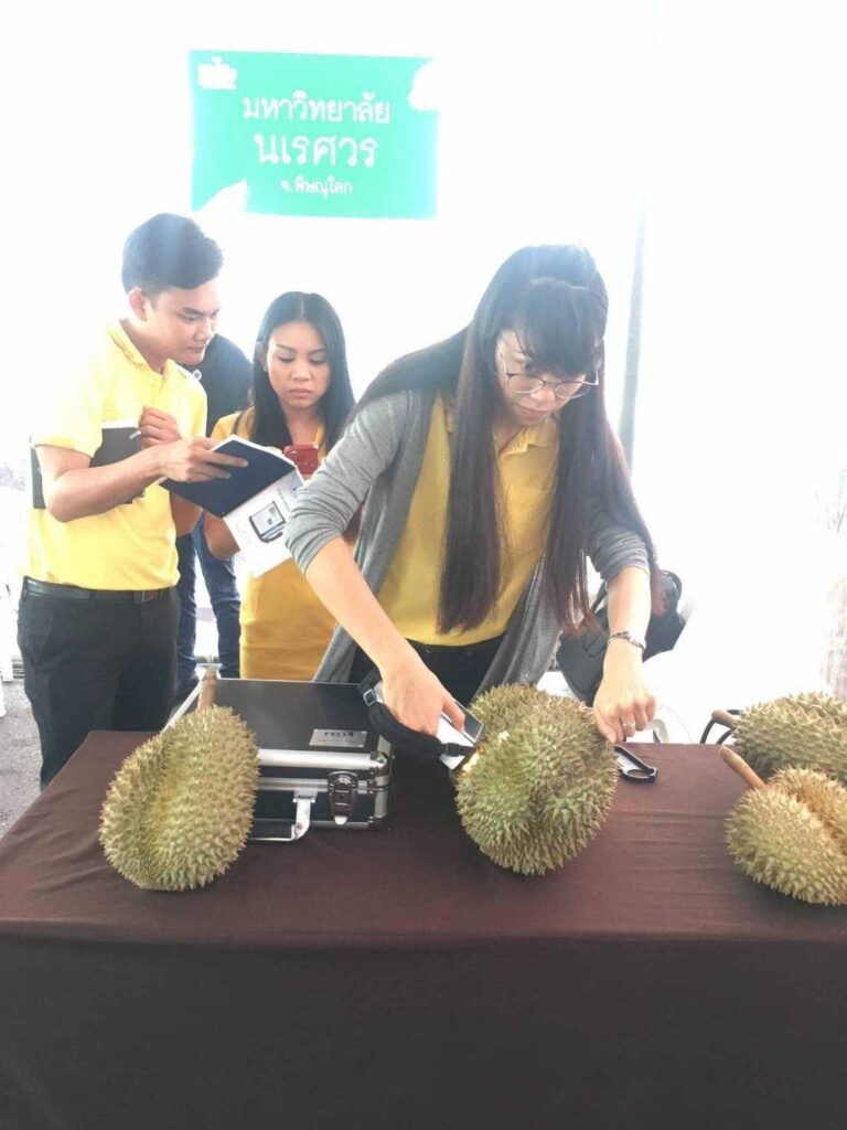 ผู้ช่วยศาสตราจารย์ ดร.พีระศักดิ์ ฉายประสาท คณะเกษตรศาสตร์ ทรัพยากรธรรมชาติ และสิ่งแวดล้อม มหาวิทยาลัยนเรศวร ได้เล็งเห็นปัญหาเรื่องคุณภาพของผลไม้นี้ โดยเฉพาะอย่างยิ่งปัญหาการจำหน่ายทุเรียนอ่อน ในช่วงต้นฤดูเก็บเกี่ยวผลผลิตทุเรียนทุกปีมักประสบปัญหาการตัดทุเรียนอ่อนออกมาจำหน่ายค่อนข้างมาก เนื่องจากผู้รับซื้อหลายรายแย่งกันซื้อทุเรียนเหมายกสวนและแย่งกันตัดทุเรียนเพื่อเก็งกำไรในช่วงเปิดตลาด ปัญหาทุเรียนอ่อนหรือทุเรียนด้อยคุณภาพได้ทำลายความเชื่อมั่นของผู้บริโภค ส่งผลกระทบต่อตลาดทุเรียนทั้งในประเทศและต่างประเทศ จึงได้นำเทคนิคเนียร์อินฟราเรดสเปคโทรสโกปี (Near Infrared spectroscopy: NIR) มาใช้ในการตรวจสอบความแก่ของทุเรียนแบบไม่ทำลายผลิตผล ซึ่งการใช้เครื่อง NIR ในการตรวจสอบคุณภาพนี้เป็นเทคนิคที่กำลังได้รับความนิยมในการนำมาใช้ประเมินคุณภาพหรือประกันคุณภาพของผลผลิตทางการเกษตร ให้ข้อมูลทั้งในเชิงคุณภาพและปริมาณ ไม่ทำลายตัวอย่าง สามารถประเมินคุณภาพได้สูง ได้ค่าที่ถูกต้อง แม่นยำ ไม่จำเป็นต้องใช้ผู้มีประสบการณ์ มีความรวดเร็ว ไม่ใช้สารเคมีในการวิเคราะห์ ผู้ปฏิบัติงานมีความปลอดภัยและไม่ส่งผลกระทบต่อสิ่งแวดล้อม