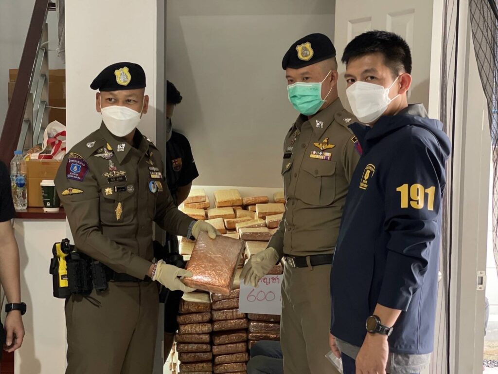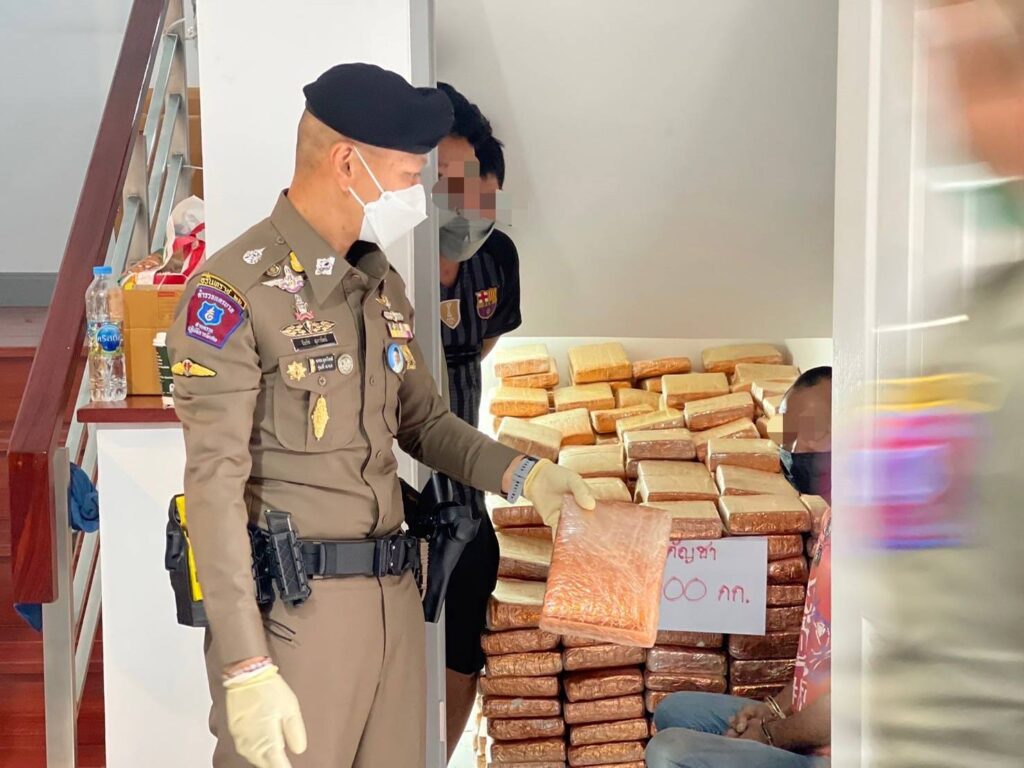 จึงเชื่อว่าสิ่งของดังกล่าวเป็นกัญชาอัดแท่ง จึงได้แสดงตัวขอเข้าทำการตรวจค้น ผลการตรวจค้นพบเป็นกัญชาอัดแท่งจำนวน 600 ก้อน น้ำหนักประมาณ 600 กิโลกรัม ซุกซ่อนอยู่ภายในบ้านหลังดังกล่าว ผู้ต้องหาทั้งหมดรับว่ากัญชาทั้งหมดรับมาเพื่อจำหน่ายทางออนไลน์ ไปรับกัญชาโดยขับรถยนต์โตโยต้า แคมรี่ สีทอง คันทะเบียน ภธ-1715 กรุงเทพฯ ไปจอดไว้ที่ลานจอดรถห้างเทสโก้โลตัส และจะมีคนนำรถยนต์กระบะนิสสัน รุ่นนาวาร่า สีเทา คันทะเบียน บษ-831 สกลนคร ที่บรรทุกกัญชามาจอดทิ้งไว้ให้ เจ้าหน้าที่ตำรวจจึงได้เดินทางไปตรวจสอบ และสามารถจับกุมผู้ต้องหาอีก 1 ราย คือนายชัยวัฒน์ ด๊ะวี ซึ่งเป็นผู้ที่ขับรถยนต์กระบะขนกัญชามาส่งให้และนายชัยวัฒนฯ รับว่าเป็นผู้ขับรถกระบะขนกัญชามาจาก อ.ปากช่อง จ.นครราชสีมา มาจริง ในการขนลำเลียงกัญชามาที่กรุงเทพฯนั้นจะมีนายยงยุทธ อิ่มลิ้มธาร เป็นคนขับรถนำ เพื่อตรวจสอบหลบเลี่ยงด่านตรวจต่างๆระหว่างทาง โดยนายยงยุทธฯ จะใช้รถยนต์นิสสัน มาร์ช สีดำ คันทะเบียน ขว-572 นครราชสีมา เป็นคันรถนำ ซึ่งขณะที่เจ้าหน้าที่ตำรวจกำลังทำการจับกุม นายชัยวัฒน์ฯ อยู่นั้น นายยงยุทธฯ ได้ขับรถยนต์นิสสันมาร์ช คันดังกล่าวหลบหนีไป เจ้าหน้าที่ตำรวจได้ติดตามไป จนสามารถจับกุมได้ที่บ้านเลขที่ 130 หมู่ที่ 9 ต.หนองน้ำแดง อ.ปากช่อง จ.นครราชสีมา สอบถามนายยงยุทธฯ รับว่าตนไปรับกัญชามาจาก จ.มุกดาหาร มาไว้ที่ อ.ปากช่อง จ.นครราชสีมา