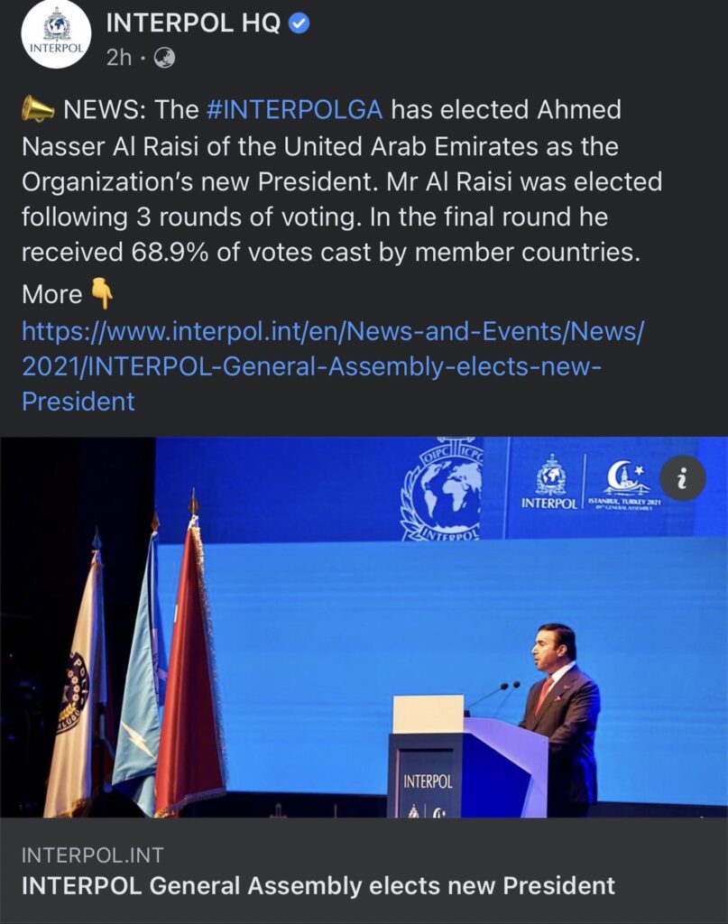 โดยหลังจากการลงคะแนนเลือกประธานองค์การตำรวจสากลคนใหม่ ในวันที่ 25 พ.ย.64 พล.ต.ท.ประจวบ วงศ์สุข ผู้ช่วย ผบ.ตร. ได้ร่วมแสดงความยินดีกับ พล.ต.ต.อาเหม็ด นัสเซอร์ อัล ไรซิ ผู้บัญชาการตำรวจแห่งกระทรวงมหาดไทยสหรัฐอาหรับเอมิเรตส์ ผู้ได้รับเลือกให้ดำรงตำแหน่งประธานองค์การตำรวจสากล โดยมีวาระการดำรงตำแหน่ง 4 ปี