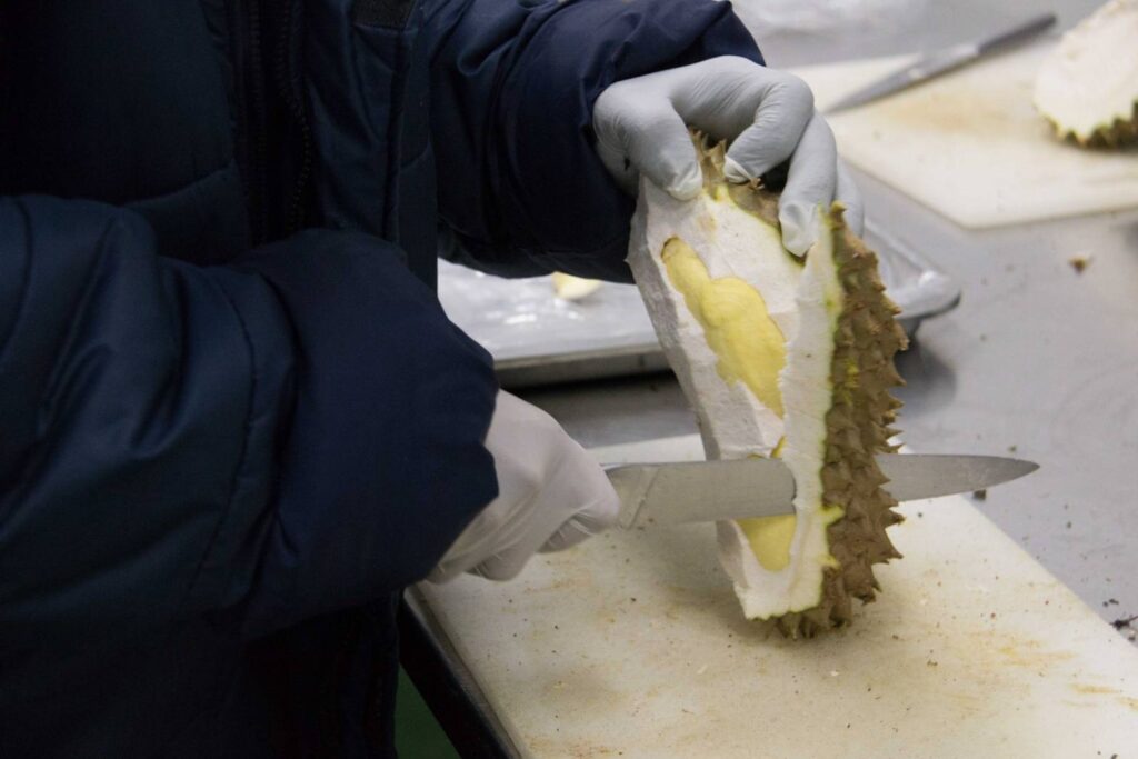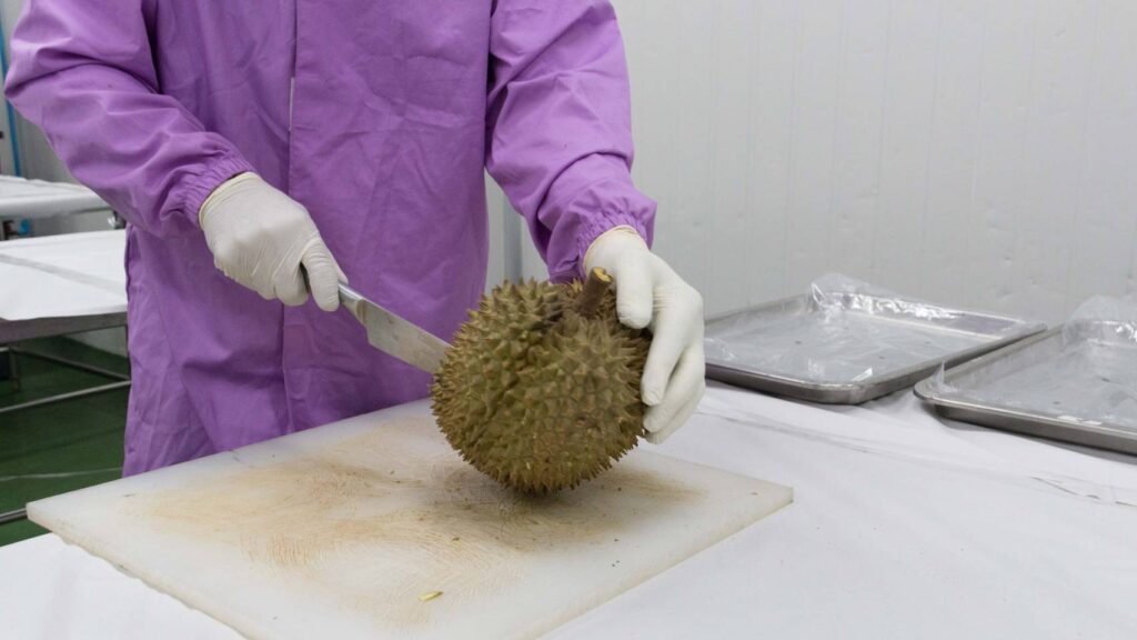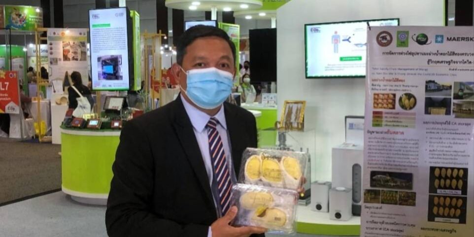 ผู้ช่วยศาสตราจารย์ ดร.พีระศักดิ์ ฉายประสาท จากคณะเกษตรศาสตร์ ทรัพยากรธรรมชาติและสิ่งแวดล้อม มหาวิทยาลัยนเรศวร ร่วมมือกับบริษัท/ผู้ประกอบการส่งออกผลไม้ตัดแต่งพร้อมบริโภคหลายแห่ง ในหัวข้อ “การบริหารจัดการสายโซ่คุณค่ามะม่วงน้ำดอกไม้สีทองและทุเรียนหมอนทอง” เพื่อแก้ปัญหาการขนส่งทุเรียนทั้งผล เนื่องจากมีค่าใช้จ่ายในการขนส่งสูงและผลแตกขณะขนส่งหรือวางจำหน่าย ณ ประเทศปลายทาง เมื่อแกะเนื้อออกมาจากผลแล้วเนื้อผลมีอายุในการเก็บรักษาสั้น จึงเป็นปัญหาทั้งในเรื่องของการส่งออกและการวางจำหน่าย ซึ่งการทำทุเรียนสดตัดแต่งเป็นอีกหนึ่งทางเลือกที่ตอบสนองกับความต้องการของผู้บริโภค แต่ทั้งนี้บรรจุภัณฑ์เพื่อเก็บทุเรียนตัดแต่งพร้อมบริโภคนั้นต้องออกแบบมาเป็นพิเศษเพื่อคงความสดไว้ให้ยาวนาน ปลอดภัยต่อผู้บริโภค ไม่มีสิ่งเจือปนหรือสารพิษตกค้างรวมถึงได้มาตรฐานสากลและจะต้องขนส่งผ่านทางเครื่องบิน เนื่องจากทุเรียนเป็นไม้ผลที่มีอายุการเก็บรักษาสั้น และเสื่อมสภาพอย่างรวดเร็ว ดังนั้น การขนส่งทางเครื่องบินจึงเป็นวิธีการที่เหมาะสำหรับขนส่งทุเรียนเพื่อจำหน่ายไปยังต่างประเทศ โดยทางทีมวิจัยได้เสนอวิธีการแก้ไขปัญหาดังกล่าวด้วยการใช้บรรจุภัณฑ์ดูดกลิ่นดูดความชื้น ร่วมกับสารดูดซับเอทิลีนเพื่อเป็นทางเลือกใหม่ในการส่งออก