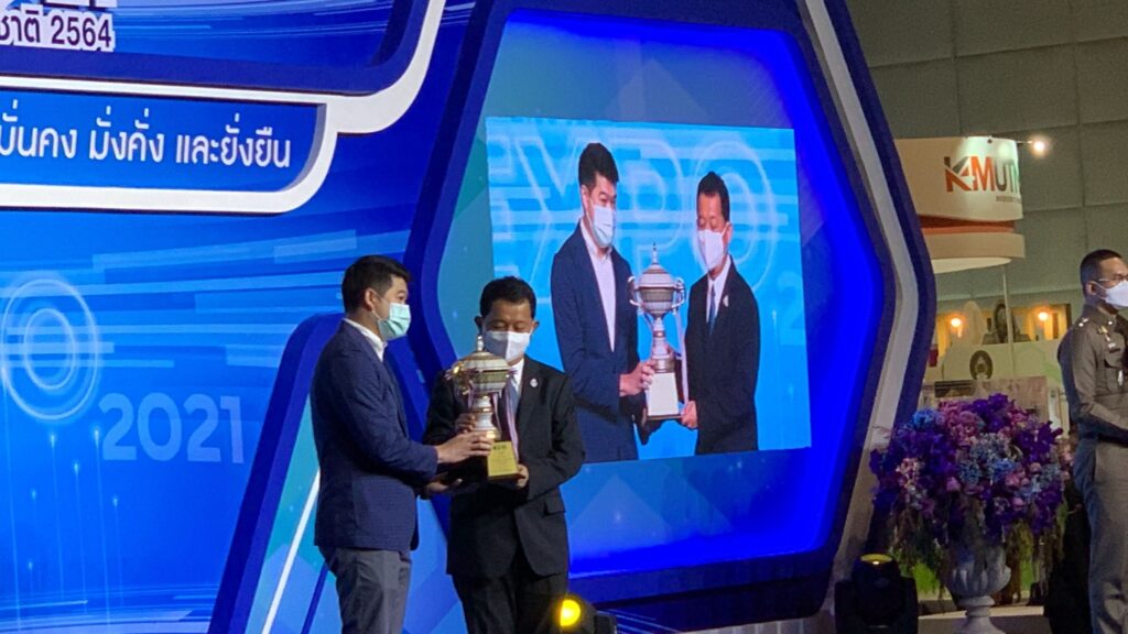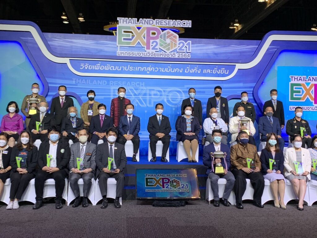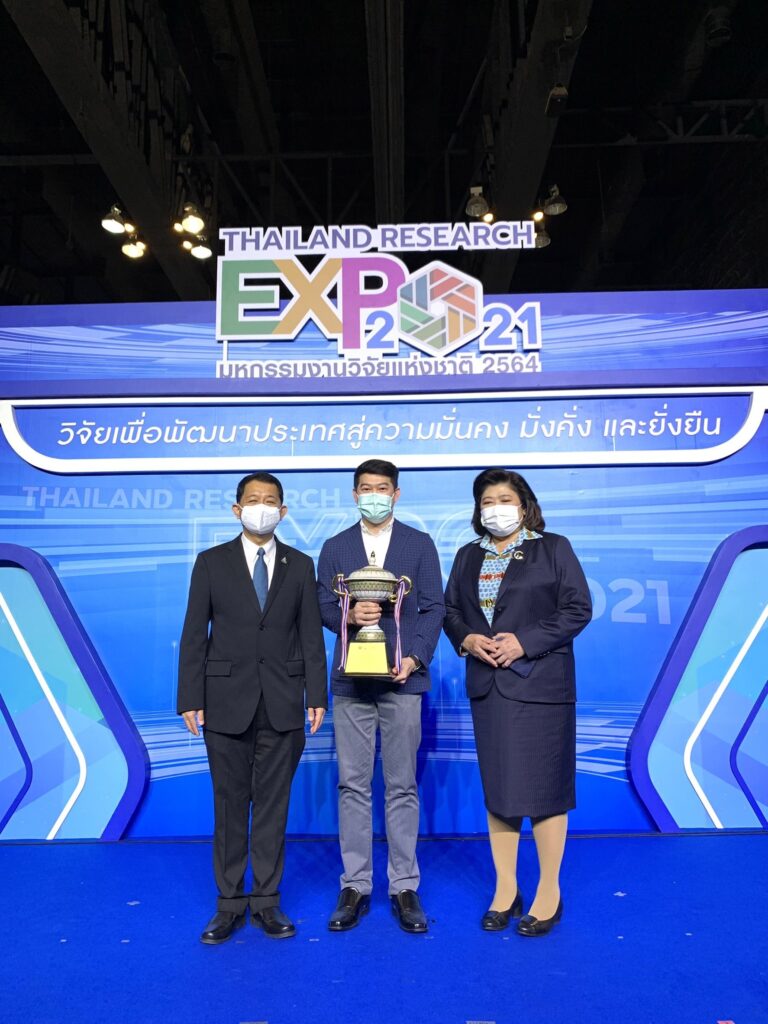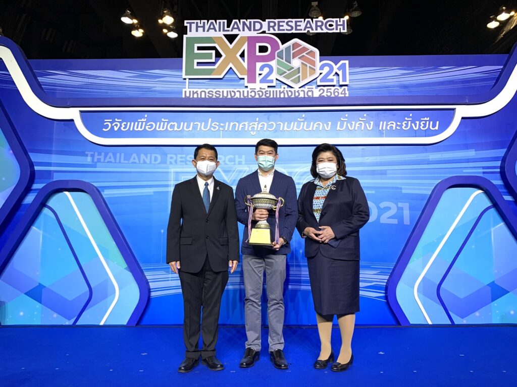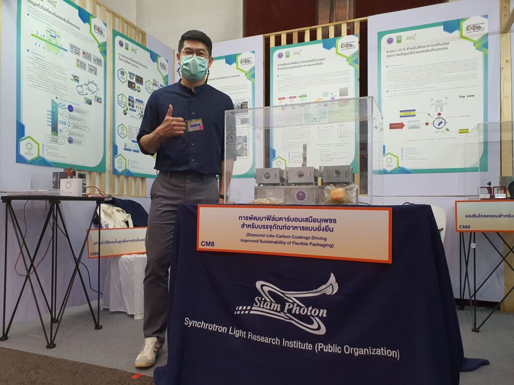 กรุงเทพมหานครฯ – สถาบันวิจัยแสงซินโครตรอนรับรางวัล Gold Award จากการนำเสนอผลงานวิจัยการพัฒนาฟิล์มคาร์บอนเสมือนเพชรสำหรับบรรจุภัณฑ์อาหารแบบยั่งยืน ในมหกรรมงานวิจัยแห่งชาติ 2564 (Thailand Research Expo 2021) ซึ่งจัดขึ้นโดยสำนักงานการวิจัยแห่งชาติ (วช.) สังกัดกระทรวง (อว.) ระหว่างวันที่ 22-26 พฤศจิกายน 2564 ณ โรงแรมเซ็นทาราแกรนด์ และบางกอกคอนเวนชันเซ็นเตอร์ เซ็นทรัลเวิลด์ กรุงเทพฯ และมีพิธีมอบรางวัลเมื่อวันที่ 26 พฤศจิกายน 2564 โดยสถาบันฯ ได้รับถ้วยรางวัลจากนายกรัฐมนตรี พร้อมเงินรางวัล 70,000 บาท มอบรางวัลโดย ศ.ดร.นพ.ศิริฤกษ์ ทรงศิวิไล ปลัดกระทรวงการอุดมศึกษา วิทยาศาสตร์ วิจัยและนวัตกรรม