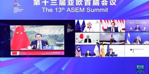 นายกรัฐมนตรีหลี่ เค่อเฉียง (国务院总理李克强) ของจีน ได้เข้าร่วมการประชุมอย่างไม่เป็นทางการของการประชุมสุดยอดเอเชีย-ยุโรป (ASEM) ครั้งที่ ๑๓ (第十三届亚欧首脑会议非正式会议) เมื่อช่วงค่ำวันที่ ๒๖ พ.ย.๖๔ ผ่านระบบทางไกลจากมหาศาลาประชาชน (ในกรุงปักกิ่ง) และกล่าวสุนทรพจน์เพื่อแลกเปลี่ยนความคิดเห็นกับผู้นำของประเทศต่างๆ ในประเด็นระหว่างประเทศและระดับภูมิภาค โดยมีสมเด็จฮุน เซน นายกรัฐมนตรีกัมพูชา เป็นประธานการประชุม ซึ่งมีประเด็นที่น่าสนใจดังนี้