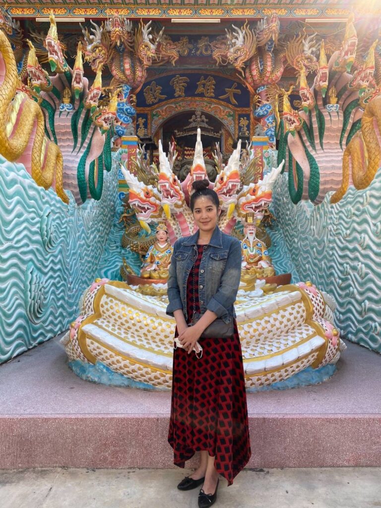 “ต้องได้ยินชื่ออาจารย์แห้วมานานแล้วค่ะ แต่ไม่มีโอกาสได้มากราบท่านสักที พอดี พี่ชัช (ทรงธรรม พลอยกาบทอง) ผู้บริหารบริษัท เปรียว จำกัด ในเครือของอินดิเพ็นเด้นท์ คอมมิวนิเคชั่น เน็ทเวอร์ค รู้จักท่านมาหลายปี เหมือนกับเป็นความโชคดีของต้องด้วย พี่ชัชก็เลยพาต้องกับดีเจ.น้องใหม่อีก 2 คน คือ น้องเคน กับ น้องกาต่าย มากราบท่าน และพ่อปู่นาคราช รวมทั้งสิ่งศักดิ์สิทธิ์ของศาลเจ้านาคราชด้วย ที่นี่งดงามมากๆ ต้องสัมผัสได้เลยว่าที่นี่ศักดิ์สิทธิ์จริงๆ อาจารย์แห้วก็มีเมตตามากๆ คือท่านบอกเรื่องที่เซอร์ไพร้สด้วย คือตอนนี้ต้องโสดแล้ว อาจารย์บอกว่าจะมีคนเข้ามาดูแล ที่สำคัญชีวิตต้องก็จะดีขึ้นไปเรื่อยๆ ด้วยค่ะ ส่วนดีเจ.น้องใหม่ ก็จะปังและมีงาน มีเงินเข้ามามากขึ้นด้วย ดีใจมากๆ เลยค่ะ”