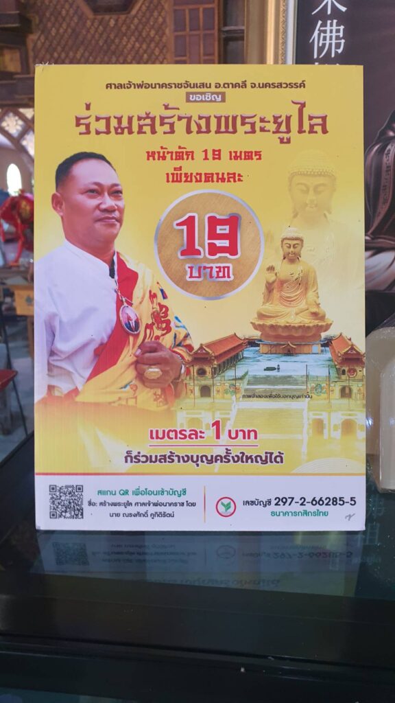 “ทุกวันที่ 10 ธันวาคมของทุกปี จะเป็นงานประจำปีศาลเจ้าพ่อนาคราชจันเสน และเป็นวันเกิดของพญาอนันตนาคราชด้วย และเป็นวันที่เจ้าพ่อนาคราช มาประทับทรงผ่านร่างอาจารย์ ซึ่งใน 1 ปี จะมีเพียงวันเดียวเท่านั้น โดยงานประจำปีปีนี้ก็มีลูกศิษย์หลายท่านมาเปิดโรงทาน มาสร้างบุญ แต่ก็อยู่ภายใต้มาตรการการป้องกัน และควบคุมการแพร่ระบาดของโรคCOVID-19 มีจุดคัดกรองก่อนเข้างาน ก็ปลอดภัยกันไว้ก่อน และอาจารย์ก็อยากจะเชิญชวนผู้ใจบุญทุกท่าน ร่วมบุญสร้าง พระยูไล หน้าตัก 19 เมตร สูง 59 เมตร ซึ่งเกิดจากนิมิตของอาจารย์เอง หวังว่าจะสำเร็จในเร็ววัน”