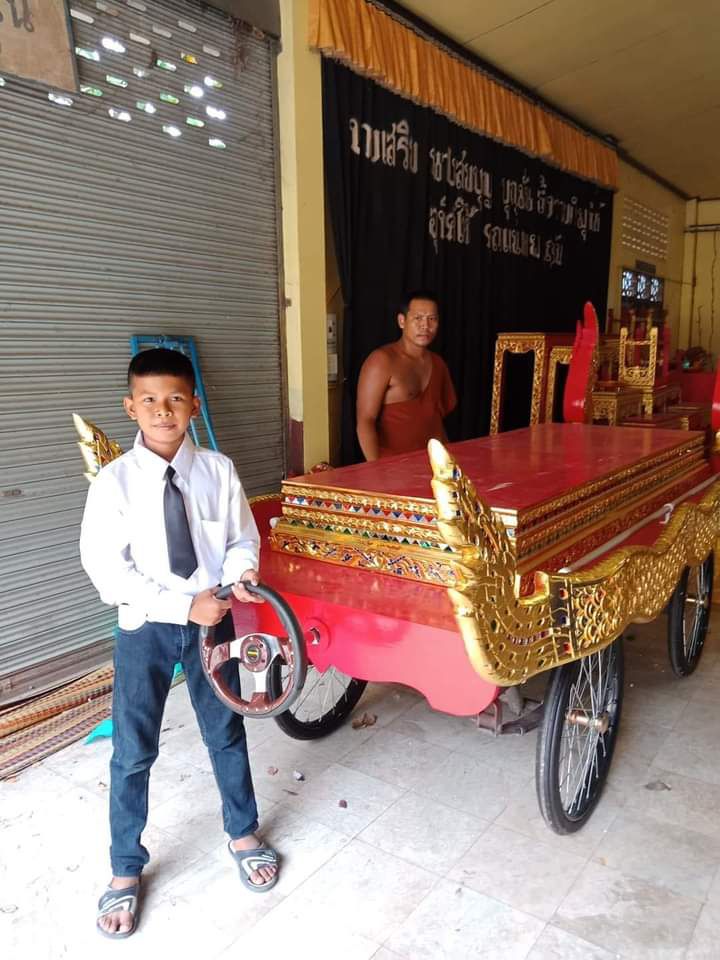 ภายในวัดท่าโขลง ต.เขาสมอคอน อ.ท่าวุ้ง จ.ลพบุรี .สามเณรโลตัส.หรืออดีต.สัปเหร่อน้อย.ด.ช.ปวีร์ โพลงเงิน(อายุ 13 ปี).ตามที่เคยเป็นข่าว.ตามหน้า.สื่อฯ.เมื่อ 1 ปีที่ผ่านมา.อีกทั้ง.บางรายการ ที.วี.เชิญอดีต.น้องโลตัส.ไปออกรายการ.แล้วขอให้.น้องฯ.เลือก.สิ่งของ 1 อย่าง ซึ่ง อดีตน้องโลตัส.เลือกที่จะขอ.ราชรถ.(รถเข็ญศพ.จากศาลาตั้งศพ สู่เมรุ.ก่อนฌาปนกิจ.)ราคา ร่วมสี่หมื่นบาท.ให้กับ.วัดมุจลินทร์.ได้ใช้ในปัจจุบันทุกวันนี้.