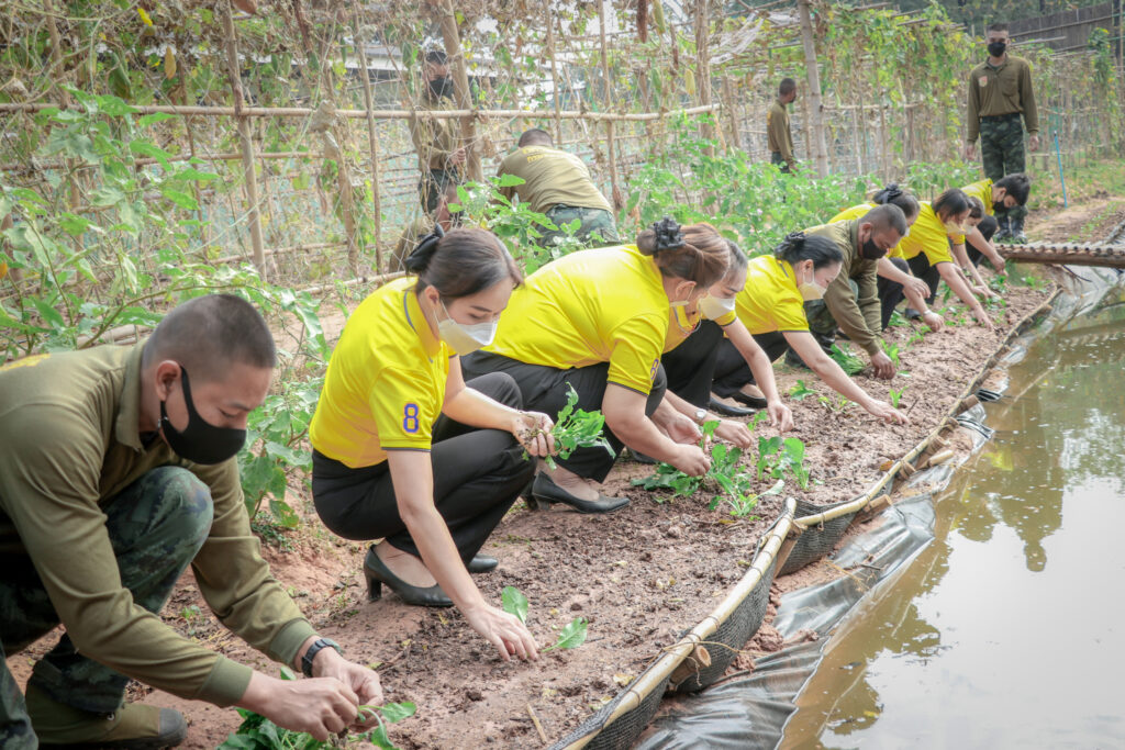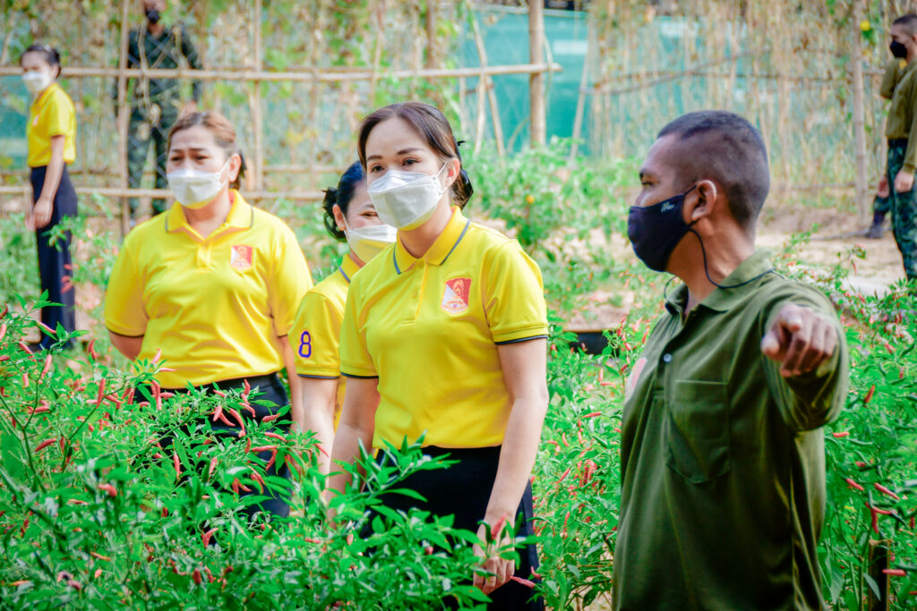 01/12/64 ที่ค่ายสีหราชเดโชไชย ต.ศิลา อ.เมือง จ.ขอนแก่น คุณเมทินี จีนทองหลาง ผู้แทนประธานสมาคมแม่บ้านทหารบก สาขา กรมทหารราบที่ 8 นำคณะแม่บ้าน พร้อมด้วยกำลังพล,ครอบครัว และบุตรหลานภายในค่ายฯ วิถีเกษตร “ปลูกผักสวนครัว รั้วกินได้” ในโครงการ “บ้านนี้มีรัก ปลูกผักกินเอง ” ตามหลักปรัชญาเศรษฐกิจพอเพียง ซึ่งเป็นประโยชน์แก่ครอบครัว และกำลังพล สามารถนำไปพัฒนาต่อยอดเป็นอาชีพเสริมให้แก่ครอบครัวในอนาคต เช่น การปลูกพริกพันธุ์จินดา,ถั่วฝักยาวลายเสือจักรพันธุ์จินดา,มะเขือเจ้าพระยา,การปลูกพืชผักชนิดต่างๆ,การเลี้ยงกบพันธุ์ทุ่งกุลา,การเลี้ยงปลา เเละการเลี้ยงไก่พันธุ์ ประดู่หางดำ รวมถึงการแจกจ่ายต้นกล้า,และเมล็ดพันธุ์พระราชทาน แก่กำลังพล และครอบครัว เพื่อนำไปปลูกเป็นพืชผักสวนครัวในพื้นที่ว่างของหน่วย พื้นที่แปลงเกษตรสาธิต บริเวณหลังบ้านพักอาศัยของกำลังพล เป็นการปลูก “ผักสวนครัว รั้วกินได้” ตามโครงการ “บ้านนี้มีรัก ปลูกผักกินเอง” เพื่อลดค่าใช้จ่ายในการประกอบอาหารของกำลังพลและครอบครัว เพื่อลดภาระค่าใช้จ่าย เป็นการสร้างรายได้ให้กับครอบครัวอีกทางหนึ่ง โดยเฉพาะในช่วงวิกฤต Covid-19 ณ พื้นที่โครงการทหารพันธุ์ดี ค่ายสีหราชเดโชไชย ต.ศิลา อ.เมือง จ.ขอนแก่น