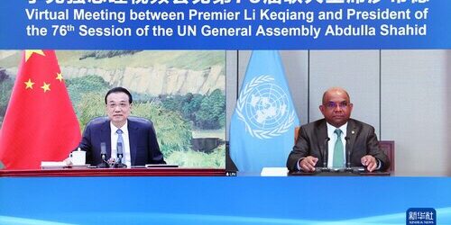 หลี่ เค่อเฉียง นายกฯจีน (国务院总理李克强) ยินดีกับนาย Abdulla Shahid ประธานสมัชชาใหญ่แห่งสหประชาชาติ (联合国大会主席) ที่ได้รับการแต่งตั้ง เป็นประธานสมัชชาใหญ่ฯ ครั้งที่ 76