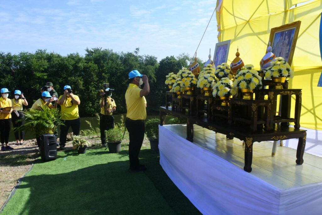 เปิดกรวยถวายราชสักการะ กล่าวเทิดพระเกียรติ และนำประชาชนจิตอาสา เบื้องหน้าพระบรมฉายาลักษณ์พระบาทสมเด็จพระเจ้าอยู่หัวและพระฉายาลักษณ์สมเด็จพระนางเจ้าฯ พระบรมราชินี