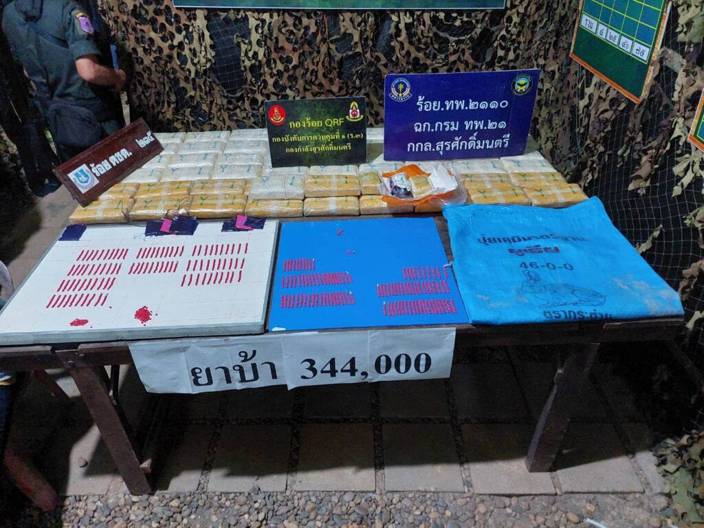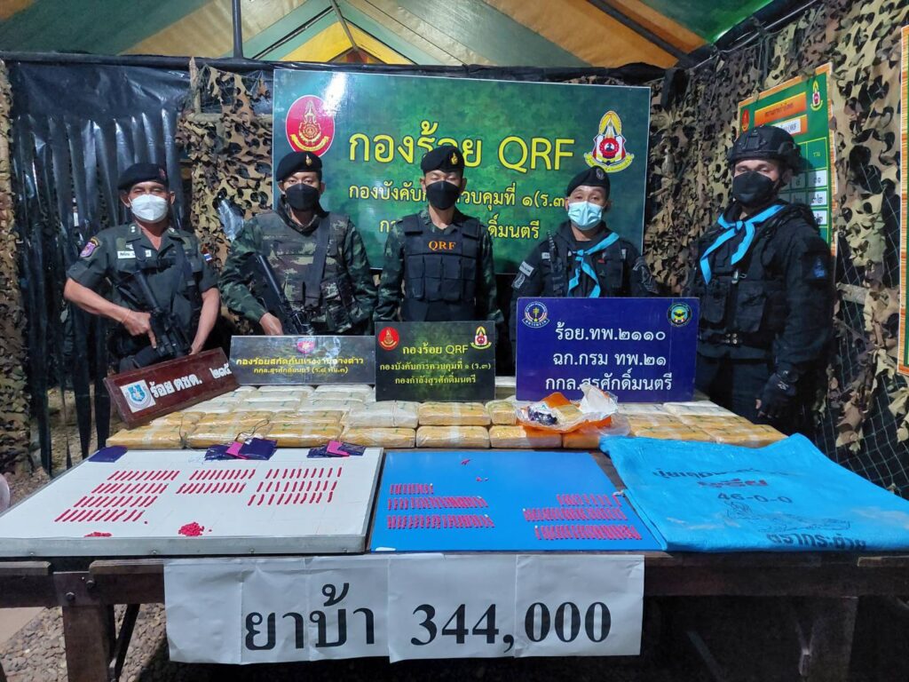 __ กองร้อยเคลื่อนที่เร็ว (QRF) บก.ควบคุมที่ 1 กกล.สุรศักดิ์มนตรี สนธิกำลังฝ่ายปกครอง ตำรวจ จับกุมยาบ้า จำนวนกว่าสามแสนเม็ด พร้อมผู้ต้องหา 1 ราย มุกดาหาร/เมื่อวันที่ 3 ธ.ค.2564 เวลาประมาณ 20.40 น. พล.ท. สวราชย์ แสงผล แม่ทัพภาคที่ 2 พล.ท.วัฒนะ พลจันทร์ ผบ.ศรภ. พล.ต บุนสิน พาดกลาง รองแม่ทัพภาคที่ 2 พล.ต. ณรงค์ สวนแก้ว ผบ.พล.ร.3 พ.อ.สุคนธรัตน์ ชาวพงษ์ ผบ.บก.ควบคุมที่ 1 ผู้บังคับการกองบังคับการที่ 1 กองกำลังสุรศักดิ์มนตรี (กรมทหารราบที่ 3) ร.อ.นฤดล อุตม์สีขันธ์ ผู้บังคับกองร้อย QRF. กองร้อย.QRF นายสมศักดิ์ บุญจันทร์ นายอำเภอหว้านใหญ่ พ.ต.อ.จารึก พุ่มระย้า ผกก.สภ.หว้านใหญ่ ได้รับแจ้งจากแหล่งข่าว ว่าจะมีการลำเลียงยาเสพติดให้โทษประเภทที่ 1 (เมทแอมเฟตามีน ) ข้ามมาจากฝั่ง สปป.ลาว เข้ามายังฝั่งไทย ในพื้นที่ บ.สองคอน ต.ป่งขาม อ.หว้านใหญ่ จ.มุกดหาร หน่วยจึงได้บูรณาการร่วมกับ พ.ต.ท. จำเนียร เศษฤทธิ์ สว.สส.สภ.หว้านใหญ่ ตชด.234 มุกดาหาร เจ้าหน้าที่ปกครองอำเภอหว้านใหญ่ จัดกำลังพลและหาข้อมูลข่าวสารเพื่อทำการสกัดกั้นกลุ่มขบวนการค้ายาเสพติดดังกล่าว ซุ่มเฝ้าตรวจจุดเพ่งเล็งในพื้นที่ จำนวน 2 จุด เมื่อเวลา 20.40 น. เจ้าหน้าที่ชุดซุ่ม ตรวจพบเรือกีบหางยาวติดเครื่องยนต์พร้อมคนบนเรือไม่ทราบจำนวนแล่นมาจาก สปป.ลาว จำนวน 1 ลำ แล้วดับเครื่องยนต์ ต่อจากนั้นได้พายเรือเข้ามา บริเวณ ริมแม่น้ำโขง หัวเขื่อน บ.สองคอน ต.ป่งขาม อ.หว้านใหญ่ จ.มุกดาหาร กลุ่มคนที่ติดมากับเรือได้เทียบฝั่งแม่น้ำโขง ได้แบกวัตถุต้องสงสัยลงจากเรือขึ้นฝั่งเพื่อจะมาบรรทุกใส่รถกระบะที่รอรับอยู่บนสันเขื่อนด้านบน แล้วนั่งเรือกลับไปยัง สปป.ลาว โดยมีชายต้องสงสัยอีกหนึ่งคนรอรับอยู่เพื่อบรรทุกวัตถุต้องสงสัยดังกล่าว เมื่อรถต้องสงสัยเริ่มเคลื่อนตัวออกเจ้าหน้าที่ชุดซุ่ม จึงได้แสดงตนขอตรวจค้น หลังการตรวจค้นภายในรถและหลังกระบะ พบว่ามีวัตถุต้องสงสัย เป็นกระสอบปุ๋ยสีน้ำเงินวางไว้อยู่หลังกระบะ เจ้าหน้าที่คาดว่าเป็นยาเสพติดจึงได้เข้าทำการขอตรวจสอบ พบว่าภายในกระสอบปุ๋ยสีน้ำเงินภายใน บรรจุยาเสพติดให้โทษประเภทที่ 1 (ยาบ้า) จึงได้ทำการตรวจยึด/จับกุม ผู้ต้องสงสัยพร้อมของกลางมาที่ บก.ร้อย.QRF เพื่อทำการตรวจสอบ และสอบถาม จากการตรวจสอบพบของกลาง ยาเสพติดให้โทษประเภทที่ 1 (ยาบ้า) จำนวน 57 ห่อ ห่อละ 3 มัด,และอีก 1 มัด รวมจำนวน 344,000 เม็ด จับกุมผู้ต้องหา ชื่อ นายบอส (นามสมมุติ) อายุ 18 ปี บ้านเลขที่ 70 ม.1 บ.ป่งขาม ต.ป่งขาม อ.หว้านใหญ่ จ.มุกดาหาร รถยนต์กระบะ 1 คัน ยี่ห้อ TOYOTA Tiger สีบรอนซ์ทอง หมายเลขทะเบียน บง.8084 มห โทรศัพท์มือถือ ยี่ห้อ VIVO รุ่น Y20 สีขาว หลังจ
