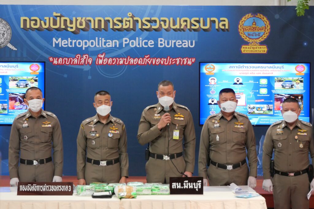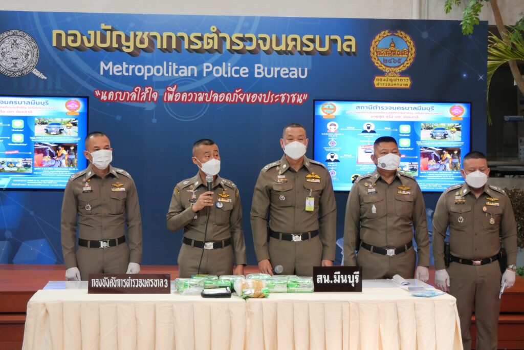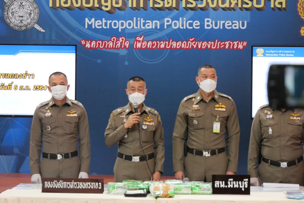 วันที่ 6 ธ.ค.64 เวลา 10.00 น.ณ ลานเอนกประสงค์ บช.น. : พล.ต.ท.สำราญ นวลมา ผบช.น. พร้อมด้วย พล.ต.ต.จิรสันต์ แก้วแสงเอก รอง ผบช.น./โฆษก บช.น.,พล.ต.ต.นิธิธร จินตกานนท์ รอง ผบช.น./รองโฆษก บช.น.,พล.ต.ต.โชคชัย งามวงศ์ รอง ผบช.น.,พล.ต.ต.พลฑิต ไชยรส ผบก.น.3,พ.ต.อ.นพรัตน์ สินมา รอง ผบก.น.3,พ.ต.อ.กฤษ ก้อมน้อย ผกก.สน.มีนบุรี และเจ้าหน้าที่ที่เกี่ยวข้อง ร่วมแถลงผลการจับกุมไอซ์ 10 กก. ในเขตพื้นที่คลองสามวา