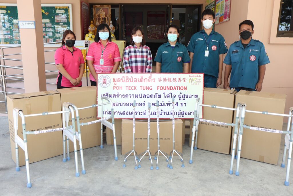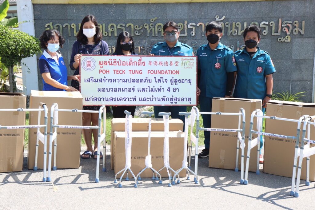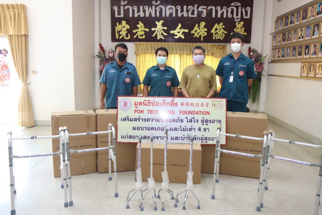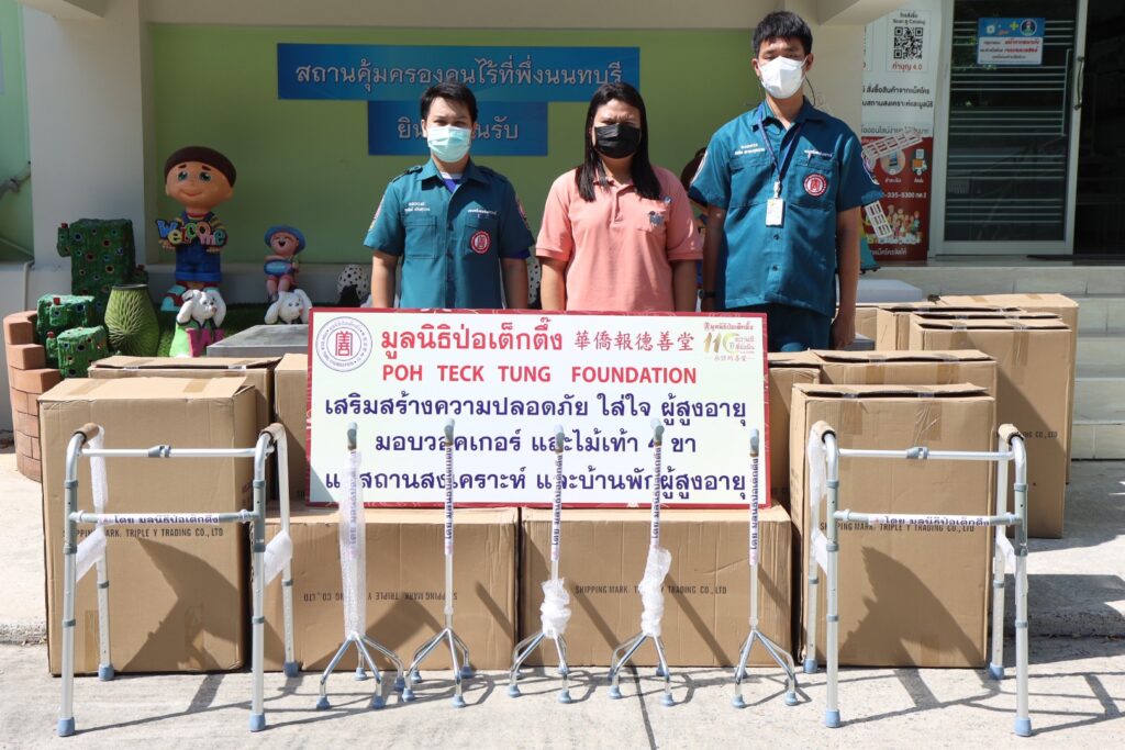ระหว่างวันที่ 3 และ 7 ธันวาคม 64 ที่ผ่านมา มูลนิธิป่อเต็กตึ๊ง โดย นางศิริกุล โอภาสวงศ์ กรรมการและเลขาธิการ ห่วงใยผู้สูงอายุในสถานสงเคราะห์และบ้านพักผู้สูงอายุ นำทีมแผนกสังคมสงเคราะห์ นำโดย นายรัชพร ประสงค์ทรัพย์ ผู้ช่วยหัวหน้าแผนกสังคมสงเคราะห์ ลงพื้นที่มอบวอคเกอร์และไม้เท้า ให้กับผู้สูงอายุในสถานสงเคราะห์ และบ้านพักผู้สูงอายุ ในโครงการ “ป่อเต็กตึ๊ง เสริมสร้างความปลอดภัย ใส่ใจผู้สูงอายุ (นำร่อง) รวม 10 แห่ง ประกอบด้วย ศูนย์พัฒนาการจัดสวัสดิการสังคมผู้สูงอายุบ้านบางละมุง จ.ชลบุรี สถานสงเคราะห์คนพิการและทุพพลภาพพระประแดง จ.สมุทรปราการ สถานสงเคราะห์เฉลิมราชกุมารี (หลวงพ่อลำใยอุปถัมภ์) จ.กาญจนบุรี สถานสงเคราะห์คนชรานครปฐม จ.นครปฐม สถานคุ้มครองคนไร้ที่พึ่งนนทบุรี จ.นนทบุรี สถานสงเคราะห์คนชราปทุมธานี สถานคุ้มครองคนไร้ที่พึ่งชายธัญบุรี จ.ปทุมธานี สถานคุ้มครองคนไร้ที่พึ่งหญิงธัญบุรี จ.ปทุมธานี สถานสงเคราะห์คนชราบ้านเขาบ่อแก้ว จ.นครสวรรค์ และ ศูนย์พัฒนาการจัดสวัสดิการสังคมผู้สูงอายุวาสนะเวศม์ จ.พระนครศรีอยุธยา รวมวอคเกอร์จำนวน 335 อัน และไม้เท้า 4 ขา จำนวน 195 อัน คิดเป็นมูลค่าทั้งสิ้น 281,300 บาท (สองแสนแปดหมื่นหนึ่งพันสามร้อยบาทถ้วน) โดยมี นางศิริพร โอภาสวงศ์ อาสาสมัครกิตติมศักดิ์ ร่วมในพิธี พร้อมด้วย ผู้แทนจากหน่วยงานต่างๆ แต่ละแห่งเป็นผู้รับมอบ