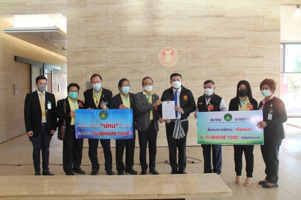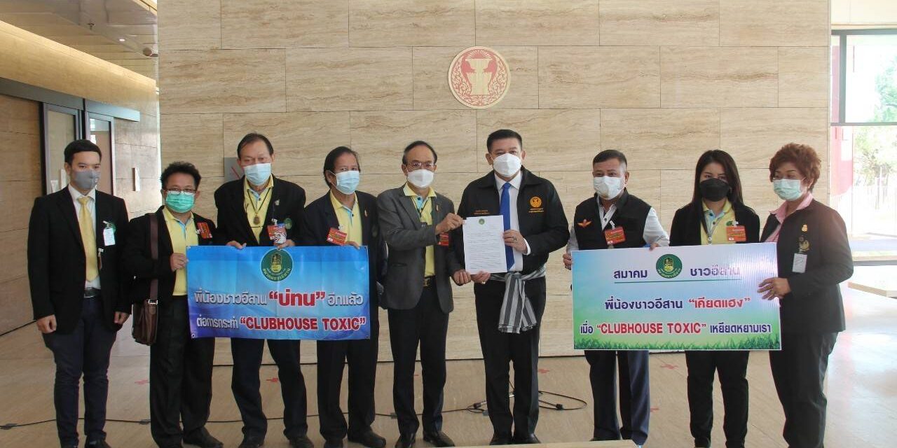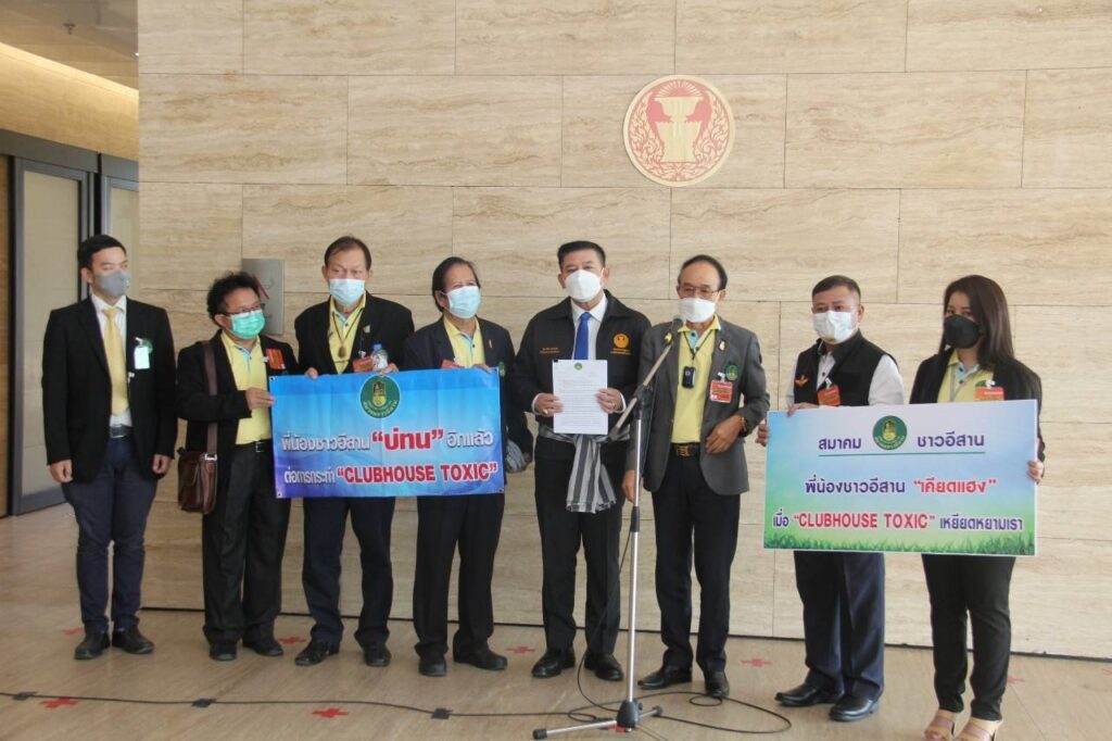 เนื่องด้วยเมื่อวันที่ 4 พฤศจิกายน 2564 ได้ปรากฏผู้ใช้บัญชี คลับเฮ้าส์ “TOXIC” ตั้งกระทู้สนทนากัน เกี่ยวกับพฤติกรรมคนอีสาน โดยก่อให้เกิดความตระหนก ตกใจ แก่ประชาชนชาวอีสาน และประชาชนชาวไทยทั่วไป ด้วยถ้อยคำดูถูก เหยียดหยาม ทำให้อับอายขายหน้า และเป็นที่จงเกลียดจงชัง จากบุคคลอื่น รวมทั้ง อาจนำไปสู่การสร้างความแตกแยก และแบ่งชนชั้นในสังคมไทย