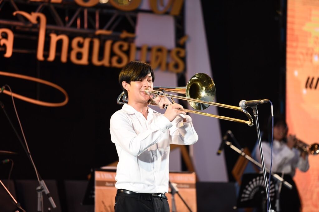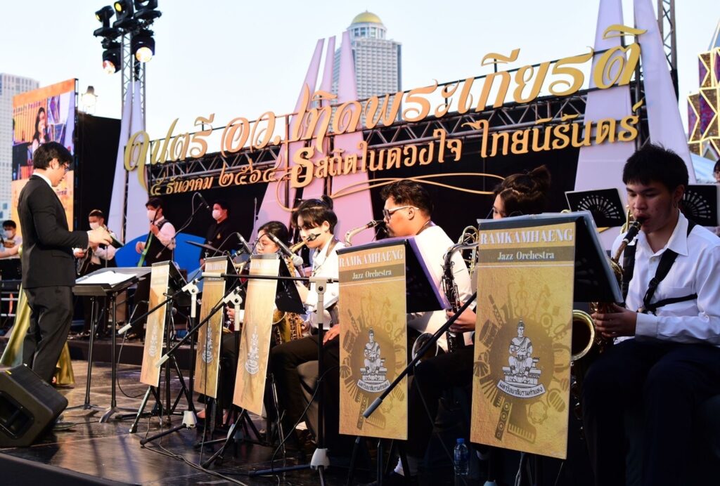 โดยมี รศ.ดร.พาสิทธิ์ หล่อธีรพงศ์ รองปลัดกระทรวง (อว.) ดร.วิภารัตน์ ดีอ่อง ผู้อำนวยการ (วช.) และแขกผู้มีเกียรติร่วมชมการแสดง ซึ่งการแสดงในวันนี้ ได้รับเกียรติจากวง “RU Jazz Orchestra” จากมหาวิทยาลัยรามคำแหง เป็นวงดนตรีประเภทแจ๊สบิกแบนด์ ที่รวมนักศึกษาจากคณะศิลปกรรมศาสตร์ และนักเรียนจากชมรมดนตรีสากลโรงเรียนสาธิตมหาวิทยาลัยรามคำแหงฝ่ายมัธยม มีอาจารย์กิติภัทร ภูซะปัจฉิม และอาจารย์ประพันธ์พงศ์ มณีวงษ์ เป็นผู้ควบคุมการฝึกซ้อม และอำนวยการแสดงโดย ผศ.กรสรวง ปาณินท์ ถ่ายทอดบทเพลงพระราชนิพนธ์ ซึ่งถือเป็นการนำบทเพลงพระราชนิพนธ์ มาผสมผสานกับแนวดนตรีสมัยใหม่ได้อย่างลงตัว