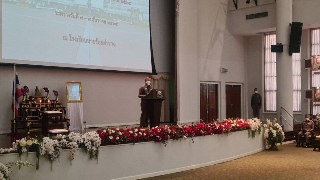 เมื่อวันที่ 7 ธ.ค.64 เวลา 10.30 น.ที่ห้องประชุมเตมียเวส โรงเรียนนายร้อยตำรวจ สามพราน จ.นครปฐม : พล.ต.อ.สุวัฒน์ แจ้งยอดสุข ผบ.ตร. เดินทางมาเป็นประธานเปิดโครงการอบรมสัมมนาเพิ่มประสิทธิภาพข้าราชการตำรวจระดับผู้กำกับการ กองบัญชาการตำรวจนครบาล (บช.น.) ปี 2564 ระหว่างวันที่ 7-9 ธ.ค.64 มี ผกก.-รองผบก. จำนวน 143 นาย โดยมี พล.ต.ท.ธัชชัย ปิตะนีละบุตร ผบช.นรต.,พล.ต.ท.ธนายุตม์ วุฒิจรัสธํารงค์ ผบช.ภ.7,พล.ต.ท.สําราญ นวลมา ผบช.น.,รองผบช.น.,ผบก.น.1-9,ผบก.สส.บช.น.,ผบก.ศฝร.บช.น. และ ผบก.อคฝ. เข้าร่วมดังกล่าวโดยใช้เวลาประมาณ 1 ชั่วโมง