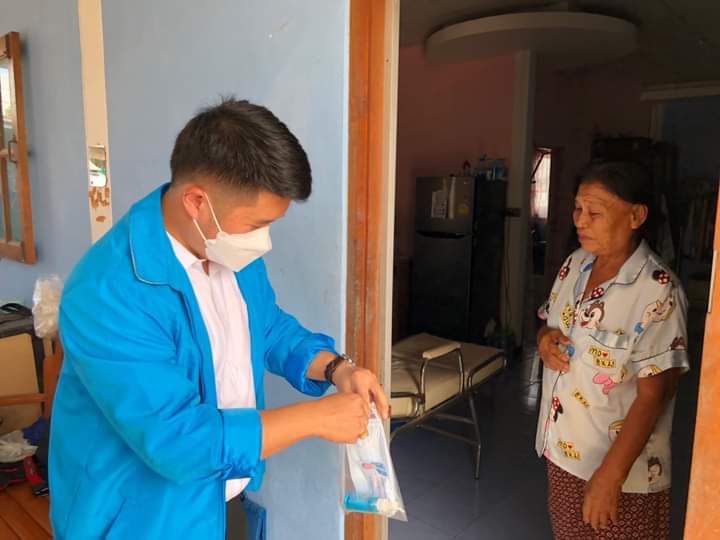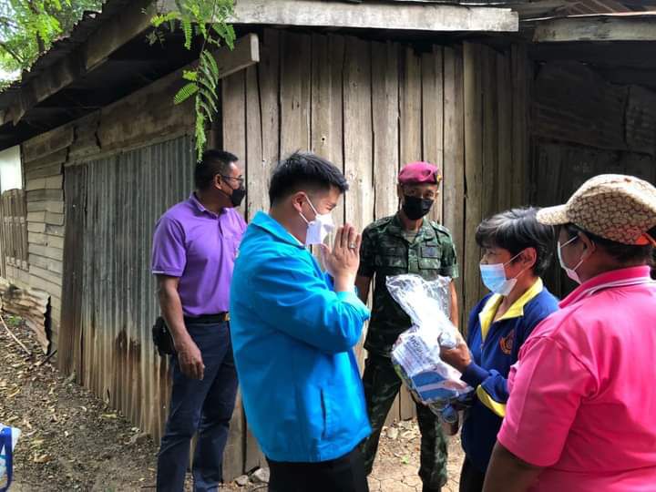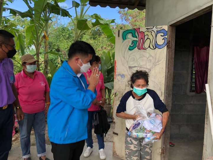 ลงพื้นที่มอบถุงยังชีพ แจกหน้ากากอนามัย และแอลกอฮอล์ ให้กับชาวบ้านและประชาชนที่เป็นผู้ป่วยติดเตียง
