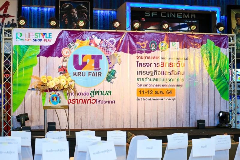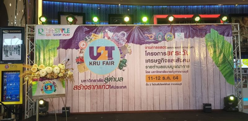 มหาวิทยาลัยราชภัฏกาญจนบุรีจัดแสดงผลงานโครงการยกระดับเศรษฐกิจและสังคมรายตำบลแบบบูรณาการ (U2T KRU) ระหว่างวันที่ 11-12 ธันวาคม พ.ศ. 2564 ณ ศูนย์การค้าโรบินสันไลฟ์สไตล์ กาญจนบุรี