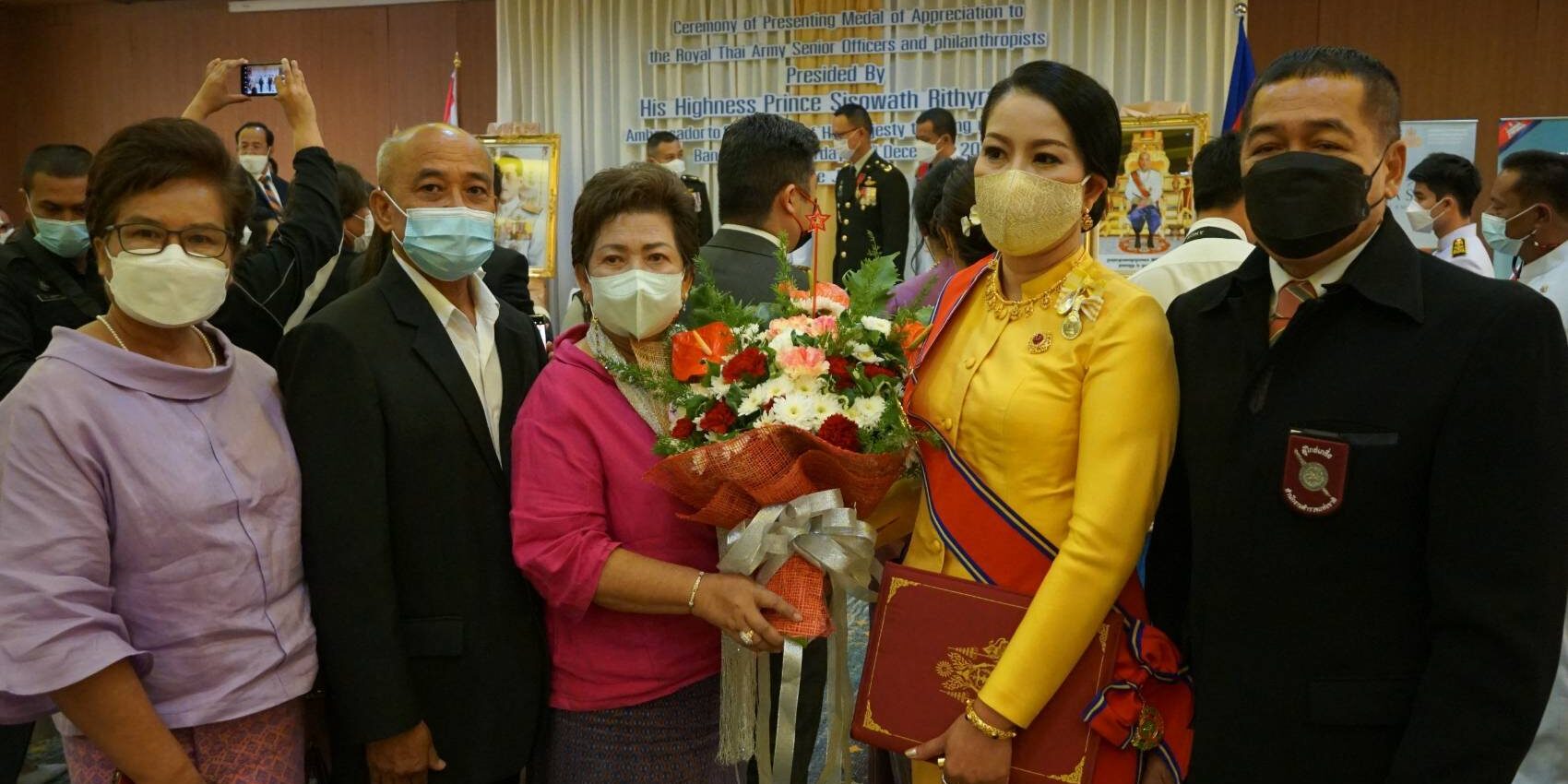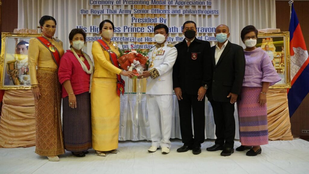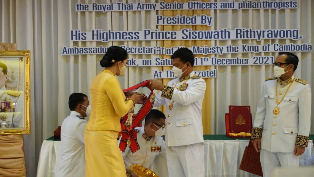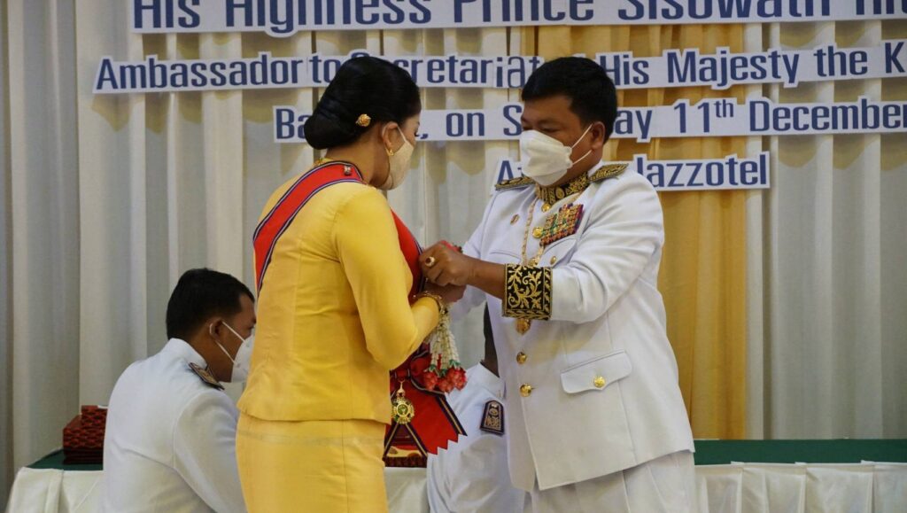 วันนี้ 11 ธันวาคม 2564 เวลา 09.00น. พระบาทสมเด็จพระบรมนาทนโรดม สีหมุนี ได้ทรงโปรดเกล้าฯให้พระองค์เจ้า(เจ้าชาย) ฤทธีราวงศ์ ศรีสุวัสดิ์ ราชเลขาฯในพระราชสำนักพระมหากษัตริย์แห่งประเทศกัมพูชา ได้เสด็จมาทรงประกอบพิธีมอบเครื่องราชอิสริยาภรณ์สหเมตรีมหาสิริวัฒน์อันดับหนึ่ง ราชวิริยาภรณ์ ให้แก่ 1 คุณหญิงอรจิรา โกศลโชติชโลธร