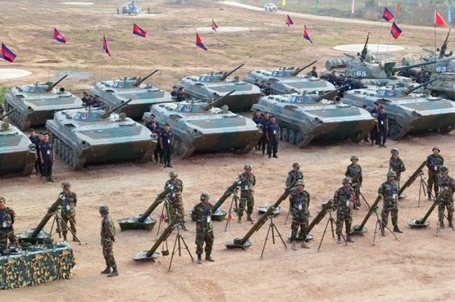 สหรัฐฯ ได้ดำเนินการตอบโต้ต่ออิทธิพลที่เพิ่มขึ้นของจีนในเอเชียตะวันออกเฉียงใต้ โดยการประกาศคว่ำบาตรกัมพูชา ด้วยมาตรการจำกัดการส่งออกอาวุธรวมทั้งการไม่ส่งออกสินค้าที่ใช้ได้สองทาง (dual-use ซึ่งใช้ได้ทั้งทางพลเรือนและทางทหาร) ตลอดจนอุปกรณ์ที่มีความอ่อนไหวด้านการทหาร และการแลกเปลี่ยนด้านการทหารกับกัมพูชา เนื่องจากกัมพูชาอนุญาตให้จีนขยายกำลังทหารโดยการสร้างสิ่งอำนวยความสะดวกในฐานทัพเรียม อีกทั้งกัมพูชาได้กลายเป็นหนึ่งในพันธมิตรที่สำคัญที่สุดของจีนในภูมิภาคนี้