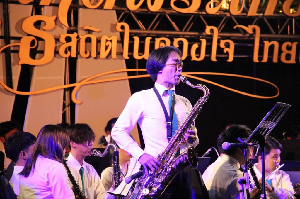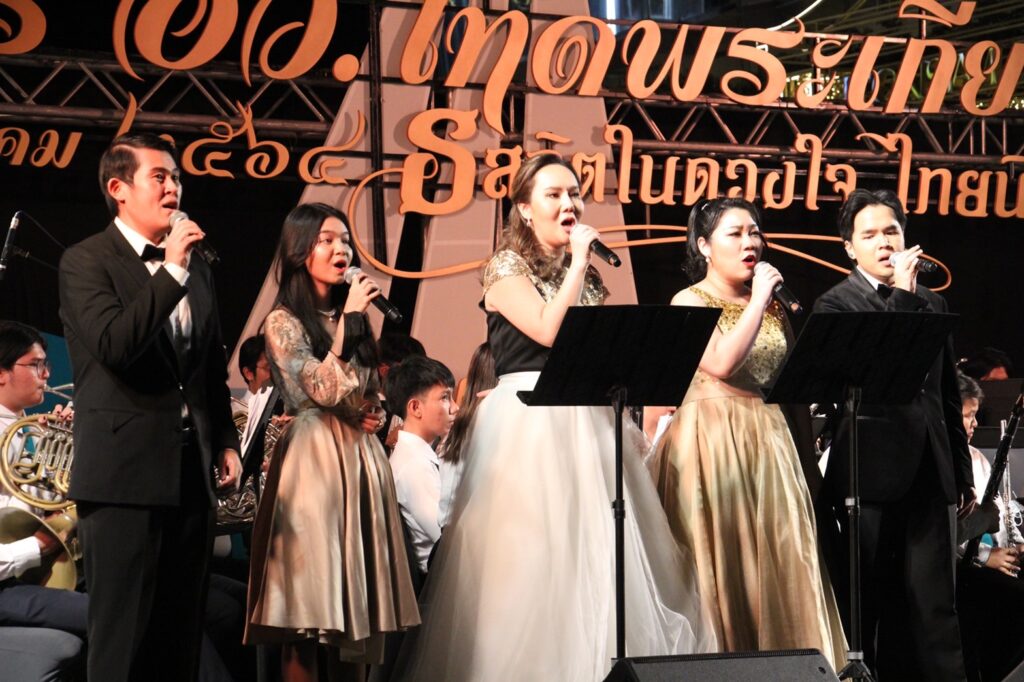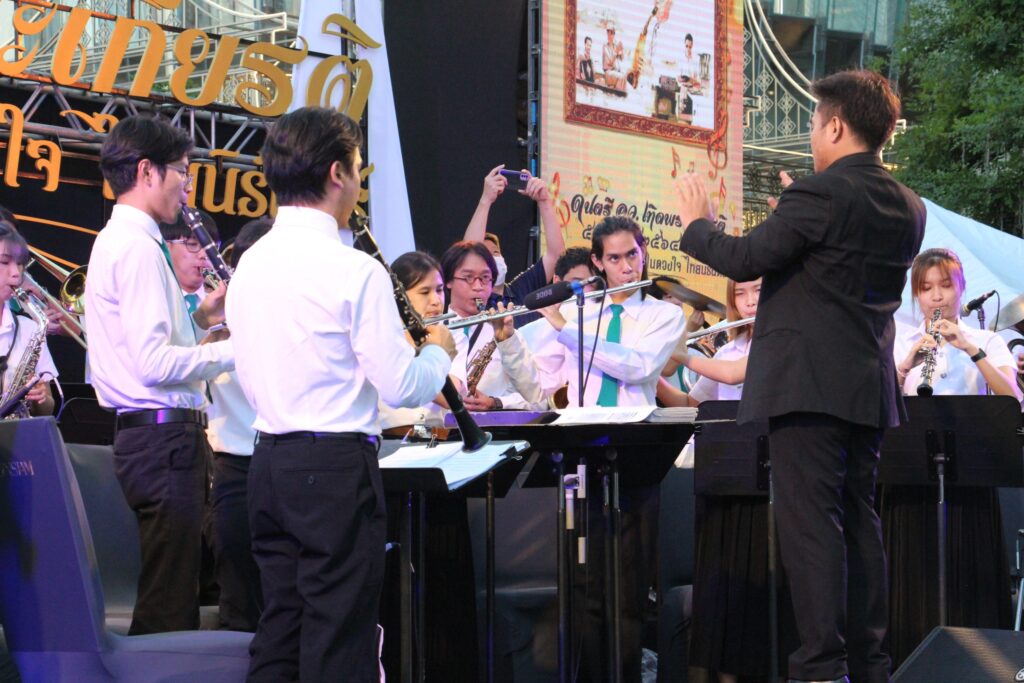 สำหรับวงดุริยางค์เครื่องลมศิลปากร เป็นการรวมกลุ่มนักดนตรีในคณะดุริยางคศาสตร์ มหาวิทยาลัยศิลปากร บรรเลงเพลงดนตรีคลาสสิกและเพลงร่วมสมัย สมาชิกของวงล้วนมีประสบการณ์การเล่นดนตรีในระดับประเทศและในระดับนานาชาติ อาทิ 130 Anniversary of Japan-Thailand Relations Concert Conducted by Yasuhide lto. เป็นต้น และยังได้เคยร่วมงานกับศิลปินระดับโลกอย่าง Johan de Meji Bert Appermont Yesuhide lto และอาจารย์ดำริห์ บรรณวิทยกิจ ภายใต้การควบคุมวงโดย อาจารย์นาวี หงสกุล ในวันนี้ได้บรรเลงเพลงพระราชนิพนธ์หลายบทเพลง เช่น ความฝันอันสูงสุด ต้นไม้ของพ่อ ใกล้รุ่ง แผ่นดินของเรา ลมหนาว อาทิตย์อับแสง และอีกหลายๆ บทเพลง สลับกับเพลงบรรเลง Jazz ชะตาชีวิต สร้างความสุข ความเพลิดเพลิน และความประทับใจให้กับประชาชนที่เข้ารับชมรับฟัง