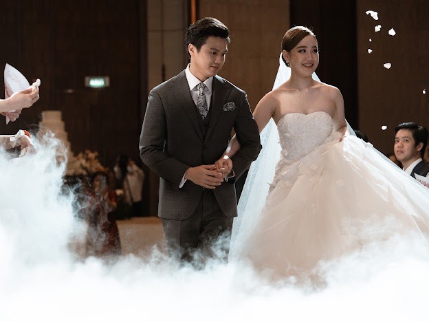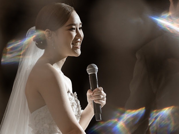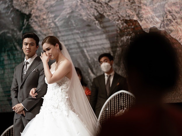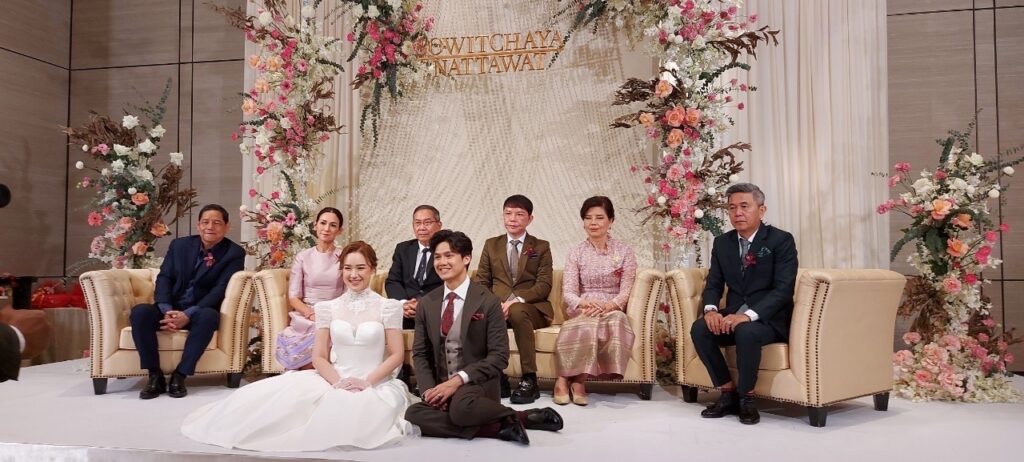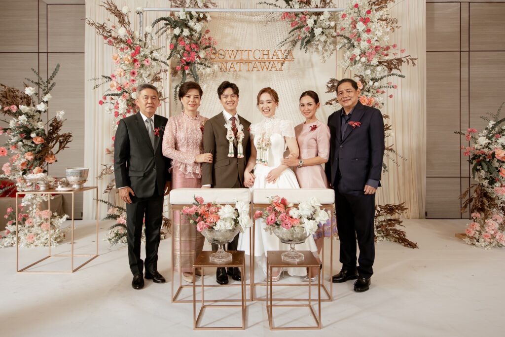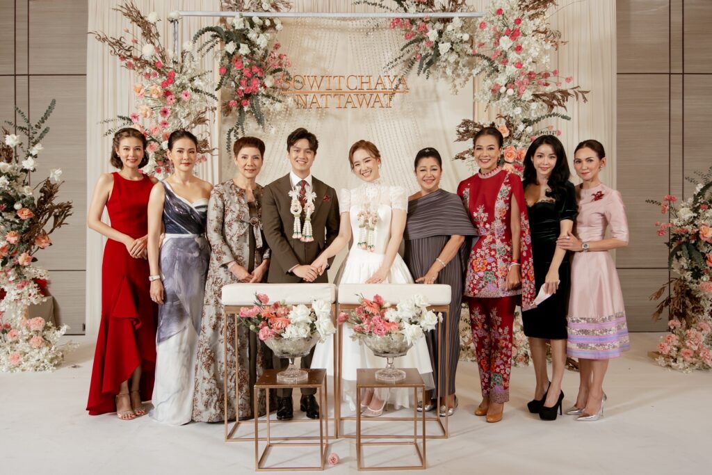 บรรยากาศภายในงานสุดแสนจะโรแมนติกด้วยดอกไม้นานาพันธุ์ และเสียงดนตรีไทยที่มาร่วมขับกล่อมบรรเลงเพลงไทยเดิมจาก มูลนิธิดุริยประณีต ทำให้บรรยากาศในช่วงเวลา “รดน้ำสังข์” อบอวลไปด้วยความสุข โดยได้รับเกียรติจาก แซม-ยุรนันท์ ภมรมนตรี และภรรยา สวมมงคลให้กับคู่บ่าวสาว