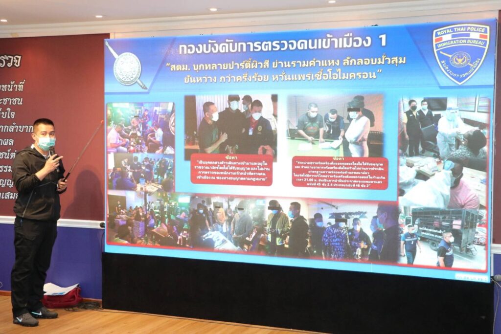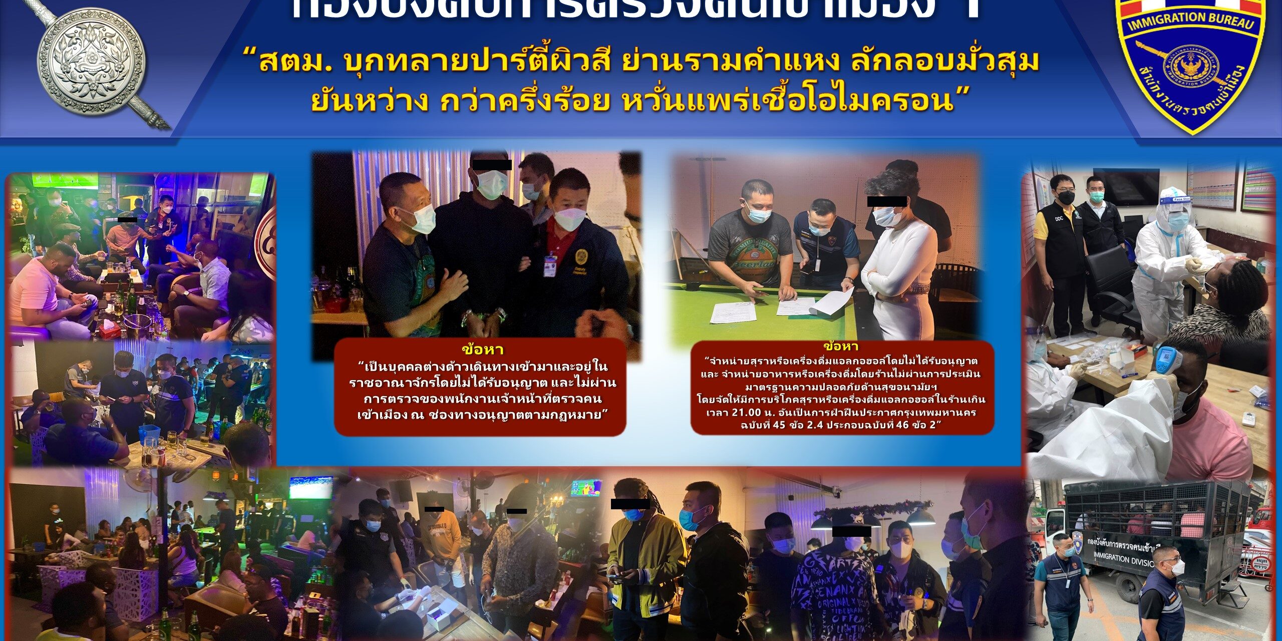 สืบเนื่องมาจากเจ้าหน้าที่ตำรวจ กองกำกับการสืบสวน กองบังคับการตรวจคนเข้าเมือง 1 ได้ทราบข้อมูลจากแหล่งข่าวว่าที่ร้านนครบาร์บางกอก ในย่านรามคำแหงจะมีการลักลอบจัดปาร์ตี้สังสรรค์ และจำหน่ายสุราหรือเครื่องดื่มแอลกอฮอล์ให้กับกลุ่มลูกค้า โดยมีกลุ่มลูกค้าส่วนใหญ่เป็นชาวต่างชาติผิวสี และมีหญิงไทยร่วมด้วย ซึ่งมักมีการนัดรวมตัวเพื่อมั่วสุมดื่มสุราหรือเครื่องดื่มแอลกอฮอล์ที่ร้านดังกล่าวเป็นจำนวนมาก เจ้าหน้าที่ตำรวจชุดจับกุมจึงได้มีการประชุม วางแผนในการเข้าปิดล้อมตรวจสอบร้านดังกล่าว ต่อมาในวันที่ 13 ธันวาคม 2564 เวลาประมาณ 01.45 น. สตม. โดย กก.สส.บก.ตม.1 ได้สนธิกำลังกับ กก.2 บก.ปส.1 และ สน.หัวหมาก เข้าปิดล้อมตรวจค้นร้านนครบาร์บางกอก ที่เกิดเหตุ พบสภาพภายในร้านมีลักษณะเป็นตู้คอนเทนเนอร์ ตกแต่งภายในโดยมีโต๊ะพูล รวมทั้งมีการจัดโต๊ะเก้าอี้สำหรับนั่งรับประทานอาหารและดื่มเครื่องดื่มแอลกอฮอล์ มีลูกค้าทั้งคนไทย และคนต่างชาติ กำลังใช้บริการอยู่จำนวนหลายสิบราย