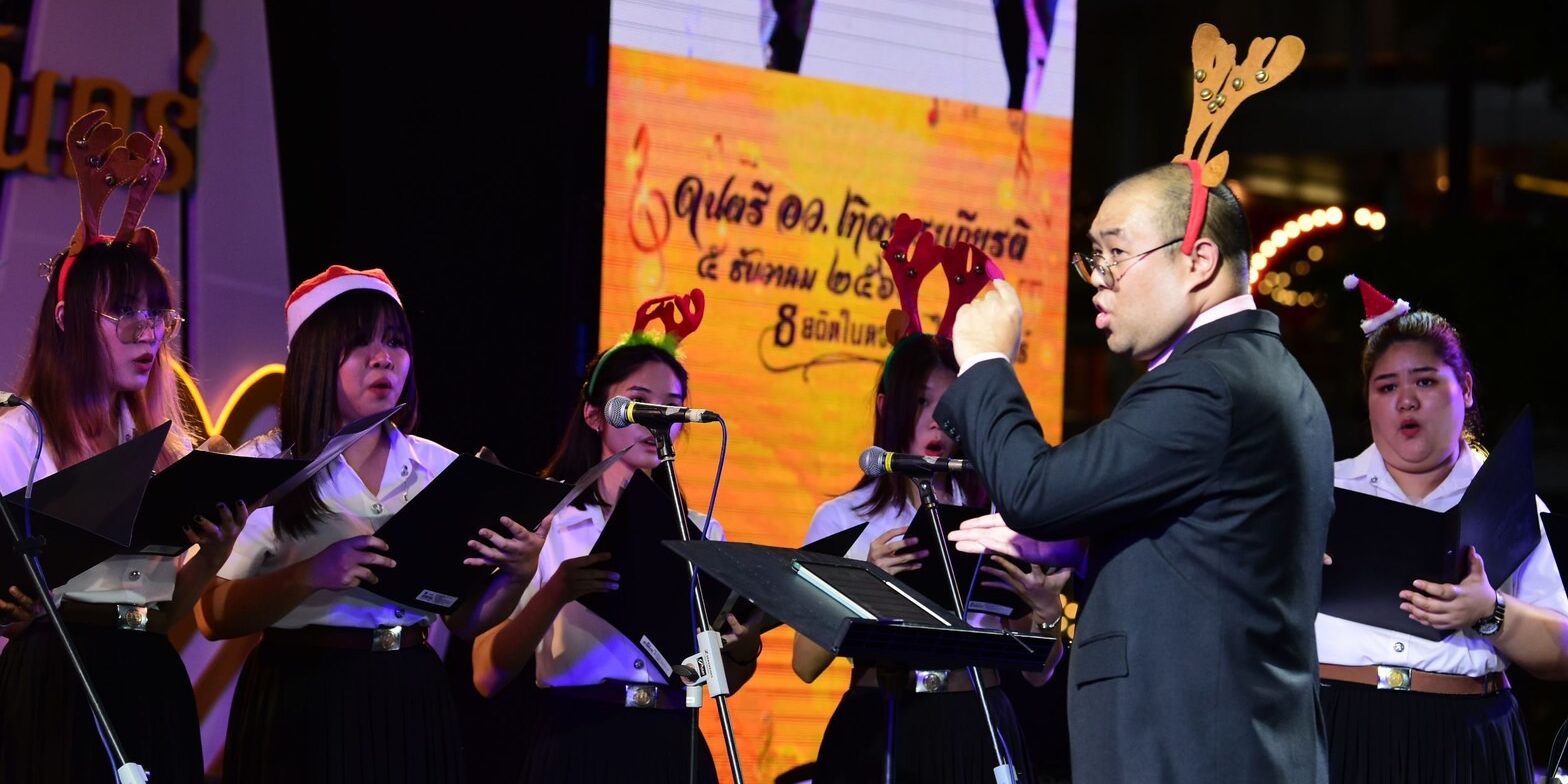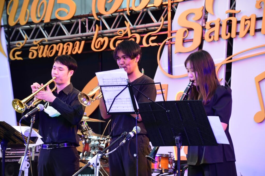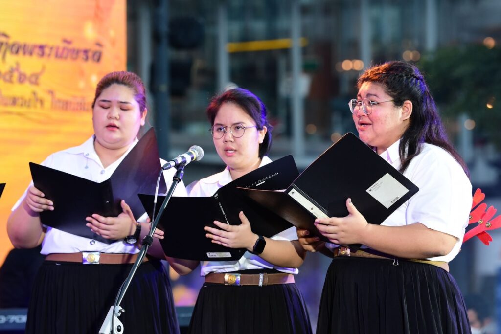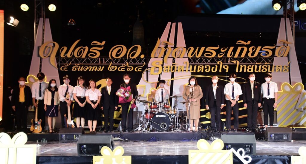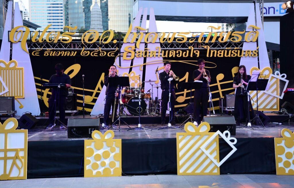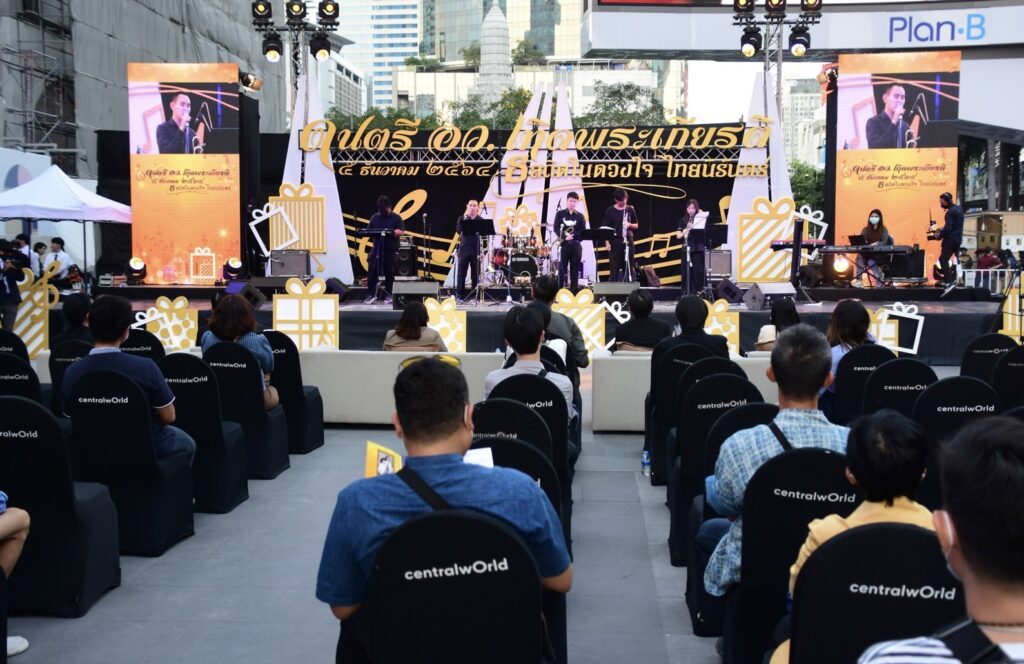 วันที่ 13 ธ.ค.64 กระทรวงการอุดมศึกษา วิทยาศาสตร์ วิจัยและนวัตกรรม (อว.) โดยสำนักงานการวิจัยแห่งชาติ (วช.) จัดแสดง “ดนตรี อว.เทิดพระเกียรติ 5 ธันวาคม 2564” เป็นวันแรก ที่ลานหน้าเซ็นทรัลเวิลด์ เพื่อน้อมรำลึกถึงพระมหากรุณาธิคุณของพระบาทสมเด็จพระปรมินทรมหาภูมิพลอดุลยเดชมหาราช “อัครศิลปิน”ของปวงชนชาวไทย โดยบรรยากาศในงานได้รับความสนใจจากประชาชนที่สัญจรผ่านไปมา ชึ่งในวันนี้ศ.ดร.นพ.สิริฤกษ์ ทรงศิวิไล ปลัดกระทรวงการอุดมศึกษา วิทยาศาสตร์ วิจัยและนวัตกรรม พร้อมด้วย ดร.วิภารัตน์ ดีอ่อง ผู้อำนวยการสำนักงานการวิจัยแห่งชาติ และแขกผู้มีเกียรติร่วมชมการแสดง ซึ่งการแสดงในวันนี้ ได้รับเกียรติจากวง “KMITL Band” และ วง “KMITL Chorus” จากสถาบันเทคโนโลยีพระจอมเกล้าเจ้าคุณทหารลาดกระบัง (สจล.) นำเพลงพระราชนิพนธ์ มาถ่ายทอดในรูปแบบการขับร้องประสานเสียง และวงดนตรีประเภทสตริง อำนวยการแสดงโดย ผศ.ดร.พิทักษ์ ธรรมวาริน คณบดีวิทยาลัยวิศวกรรมสังคีต ถ่ายทอดบทเพลงพระราชนิพนธ์ ซึ่งถือเป็นการนำบทเพลงพระราชนิพนธ์ มาผสมผสานกับแนวดนตรีสมัยใหม่ได้อย่างลงตัว