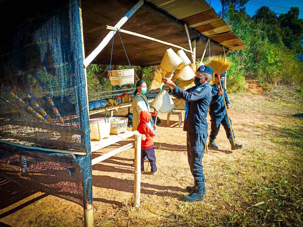 __ที่กองร้อยทหารพรานที่ 2101 (จุดตรวจบ้านนาเจริญ) ม.5 ต.เหล่ากอหก อ.นาแห้ว จ.เลย ผู้สื่อข่าวรายงานว่ากองกำลังสุรศักดิ์มนตรี โดย พันเอก อุทัย นิลเนตร ผู้บังคับหน่วยเฉพาะกิจกรมทหารพรานที่ 21 ผุดไอเดีย “จุดฝากขายสินค้าชุมชน” เปลี่ยนด้านหน้าฐานปฏิบัติการ ตามแนวชายแดน ทำจุดพักริมทาง ให้ประชาชน และนักท่องเที่ยวที่ใช้เส้นทางได้นั่งพัก ผ่อนคลาย หรือแวะเข้าห้องน้ำ ตอบสนองนโยบาย ผบ.ทบ. โดยในพื้นที่กองร้อยทหารพรานที่ 2101 (จุดตรวจบ้านนาเจริญ) ม.5 ต.เหล่ากอหก อ.นาแห้ว จ.เลย สนองตอบนโยบาย พลเอก ณรงค์พันธ์ จิตต์แก้วแท้ ผู้บัญชาการทหารบก (ผบ.ทบ.) เป็นการใช้พื้นที่ด้านหน้าฐานปฏิบัติการซึ่งเป็นจุดตรวจ ทำเป็นจุดบริการประชาชน จุดพักริมทาง ให้ประชาชนและนักท่องเที่ยวที่ใช้เส้นทาง ได้นั่งพักผ่อนคลาย พร้อมมีจุดฝากขายสินค้าชุมชน สินค้าทางการเกษตร สินค้าหัตกรรมชุมชนท้องถิ่นในแต่ละพื้นที่ของประชาชน นำมาฝากขาย โดยพี่ทหารที่อยู่ประจำจุดตรวจ ที่ว่างเว้นจากการเข้าเวรรักษาการณ์จะเป็นคนขายให้กับนักท่องเที่ยวและประชาชนทั่วไป ส่งเสริมให้ประชาชนมีพื้นที่ค้าขายเพิ่มมากขึ้น ช่วยประชาชนที่เดือดร้อนจากการไม่มีสถานที่ค้าขาย เป็นแหล่งจำหน่ายสินค้าเกษตร/เกษตรอินทรีย์/สินค้าชุมชน/ของใช้ต่างๆ รวมถึงเผยแพร่ภูมิปัญญาท้องถิ่นด้านผลิตภัณฑ์ (OTOP) จากภูมิปัญญาท้องถิ่นเชื่อมโยงผลิตภัณฑ์จากท้องถิ่น และชุมชนสู่มือประชาชนทั่วไปและนักท่องเที่ยวที่ผ่านในเส้นทางที่แวะเข้ามาซื้อผลิตภัณฑ์ที่วางจำหน่าย ด้านหน้าฐานปฏิบัติการ