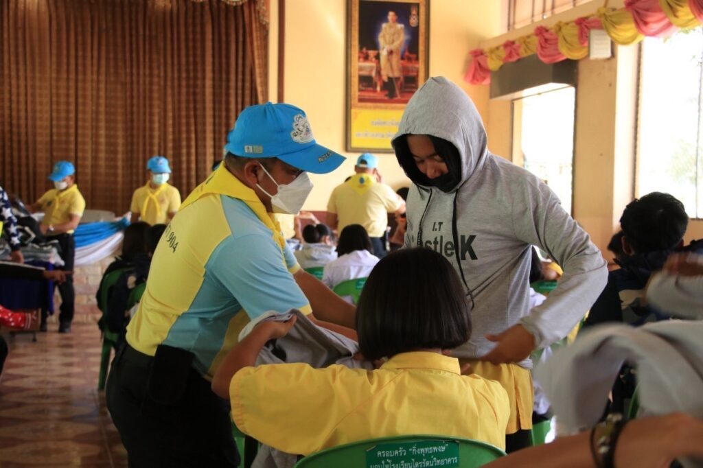 ทั้งนี้ นาง เปรมสุดา ฉายแสง ผู้อำนวยการโรงเรียนฯ ได้ดำเนินการขอความอนุเคราะห์มายังจิตอาสาตำรวจสอบสวนกลาง จึงได้รีบดำเนินการจัดหาเสื้อกันหนาวเพื่อมอบให้แก่นักเรียน โดยได้รับการสนับสนุนเสื้อกันหนาวจาก พล.ต.ท.ต่อศักดิ์ สุขวิมล ผู้ช่วย ผบ.ตร. และ พล.ต.ท.จิรภพ ภูริเดช ผบช.ก.