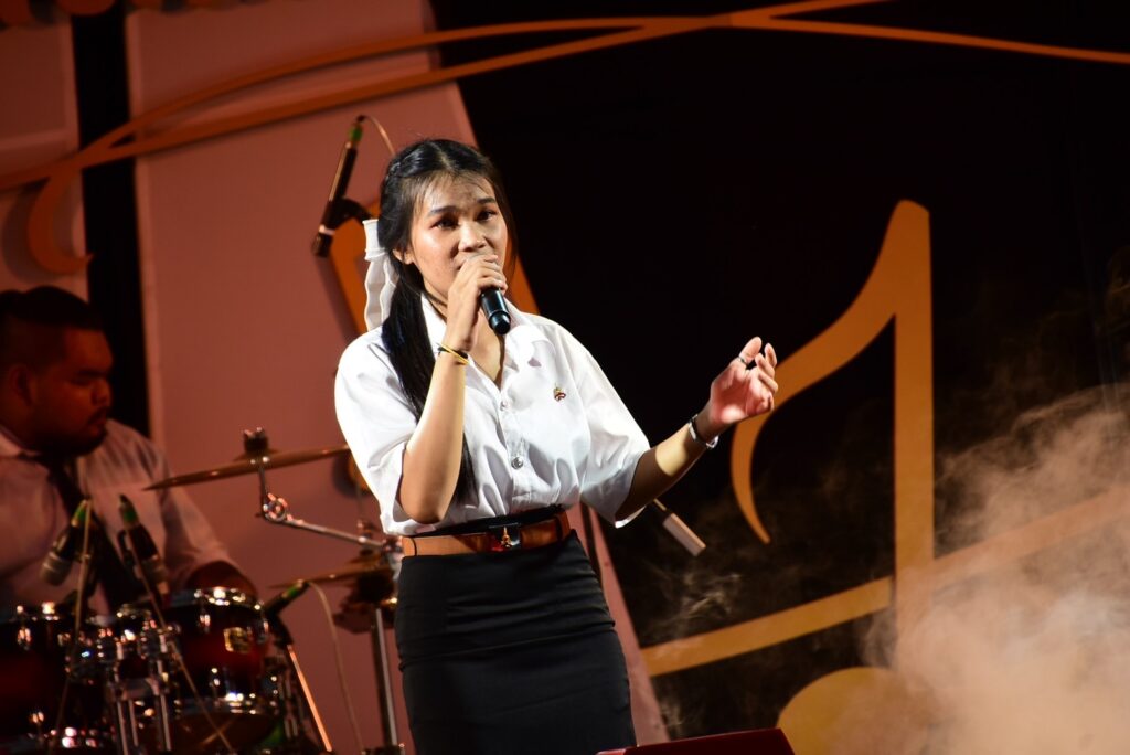 ในวันนี้ ได้รับเกียรติจาก นายวันนี นนท์ศิริ ผู้ช่วยปลัดกระทรวงการอุดมศึกษา วิทยาศาสตร์ วิจัยและนวัตกรรม ผศ.ดร.เจษสฤษฎิ์ อังศุกาญจนกุล รองอธิการบดีฝ่ายกิจการนักศึกษา ผศ.ดร.เอกพงษ์ อินเกื้อ คณบดีคณะศิลปกรรมศาสตร์ มหาวิทยาลัยราชภัฏสวนสุนันทา พร้อมคณะผู้บริหาร และแขกผู้มีเกียรติร่วมชมการแสดง โดยการแสดงในวันนี้ วง “แก้วเจ้าจอม” จากมหาวิทยาลัยราชภัฏสวนสุนันทา บรรเลงและขับร้องโดยนักศึกษาของสาขาวิชาดนตรี คณะศิลปกรรมศาสตร์ ได้นำบทเพลงพระราชนิพนธ์ มาถ่ายทอดในรูปแบบวงดนตรีไทยสากล เพื่อเทิดพระเกียรติในหลวง รัชกาลที่ 9 เช่น เพลง Oh I Say, ยิ้มสู้, ยามเย็น, Still on my mild, ในหลวงของแผ่นดิน ฯลฯ ซึ่งถือเป็นการนำบทเพลงพระราชนิพนธ์ มาผสมผสานกับแนวดนตรีสมัยใหม่ได้อย่างลงตัว