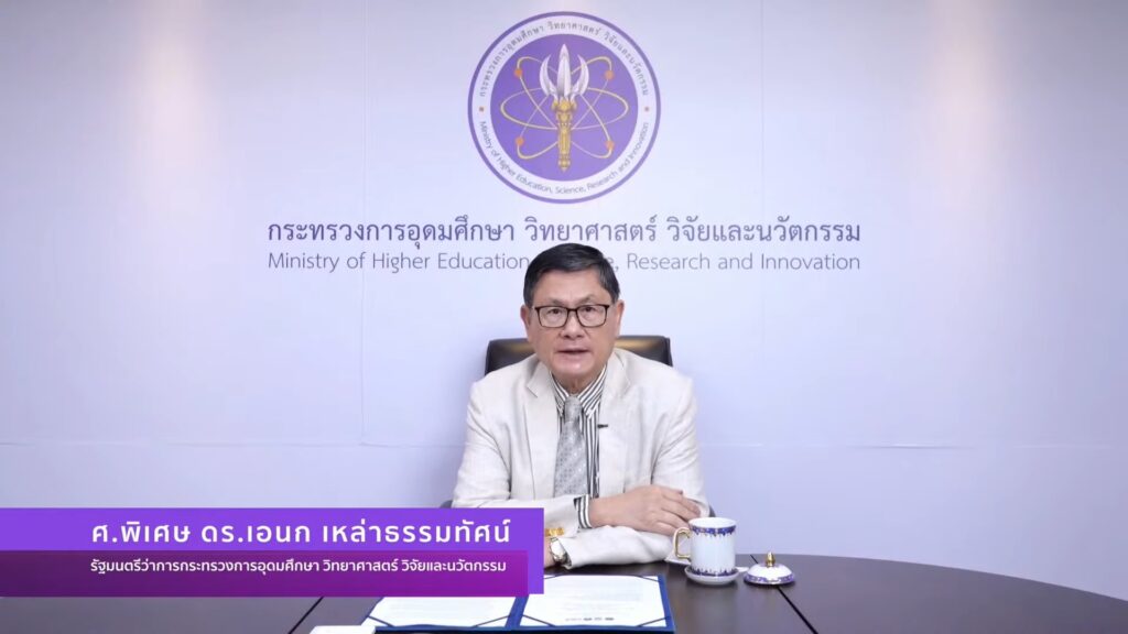 ศาสตราจารย์พิเศษ ดร.เอนก เหล่าธรรมทัศน์ รัฐมนตรีว่าการกระทรวงการอุดมศึกษา วิทยาศาสตร์ วิจัย และนวัตกรรม กล่าวว่า การจัดงาน “มหกรรมงานวิจัยส่วนภูมิภาค” นับเป็นพลังแห่งความร่วมมือของการขยายผลการนำผลงานวิจัย เทคโนโลยีและนวัตกรรมไปสู่การใช้ประโยชน์ ในพื้นที่ภูมิภาค สังคม อันแสดงให้เห็นถึงความเข้มแข็งของหน่วยงานเครือข่ายวิจัยภูมิภาค ในการประสาน และผลักดันให้งานวิจัยและพัฒนาเป็นสิ่งที่จับต้องได้ และสามารถนำไปใช้ในการแก้ไขปัญหา ตอบโจทย์การพัฒนาประเทศระดับพื้นที่ชุมชน สังคมได้อย่างเป็นรูปธรรม การพัฒนาและแก้ไขปัญหาหลากหลายด้านของประเทศ จำเป็นต้องอาศัยฐานความรู้จากการวิจัยและนวัตกรรมเป็นหลักสำคัญ และมีกลไกการวิจัยและพัฒนาสู่พื้นที่ชุมชนสังคม การพัฒนาต่อยอดและการสร้างนวัตกรรม เพื่อนำไปสู่การผลิตและบริการที่ทันสมัย การส่งเสริมการจัดทำแผนพัฒนาการวิจัยและพัฒนาในระดับภาคหรือกลุ่มจังหวัด เพื่อให้ตรงกับความต้องการของท้องถิ่น ผลักดันงานวิจัยและพัฒนาไปสู่การใช้ประโยชน์ในการพัฒนาและส่งเสริมเศรษฐกิจภูมิภาค เศรษฐกิจท้องถิ่น เศรษฐกิจชุมชน เศรษฐกิจฐานรากซึ่งเป็นประชากรส่วนใหญ่ของประเทศ จึงเป็นสิ่งที่ต้องอาศัยความร่วมมือและการสนับสนุนจากทุกฝ่าย ทั้งหน่วยงานภายในกระทรวง (อว.) และหน่วยงานภาครัฐและภาคเอกชน ทุกภาคส่วน ได้ร่วมขับเคลื่อนการพัฒนาเศรษฐกิจภูมิภาค เศรษฐกิจฐานรากเพื่อความมั่นคงของประเทศต่อไป