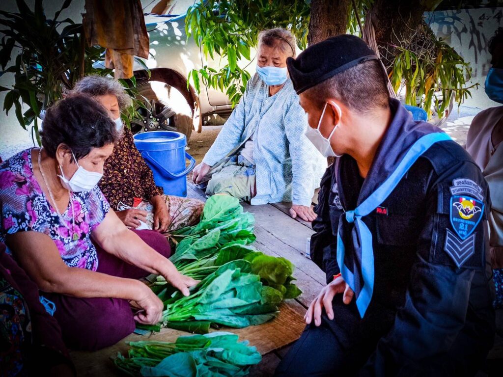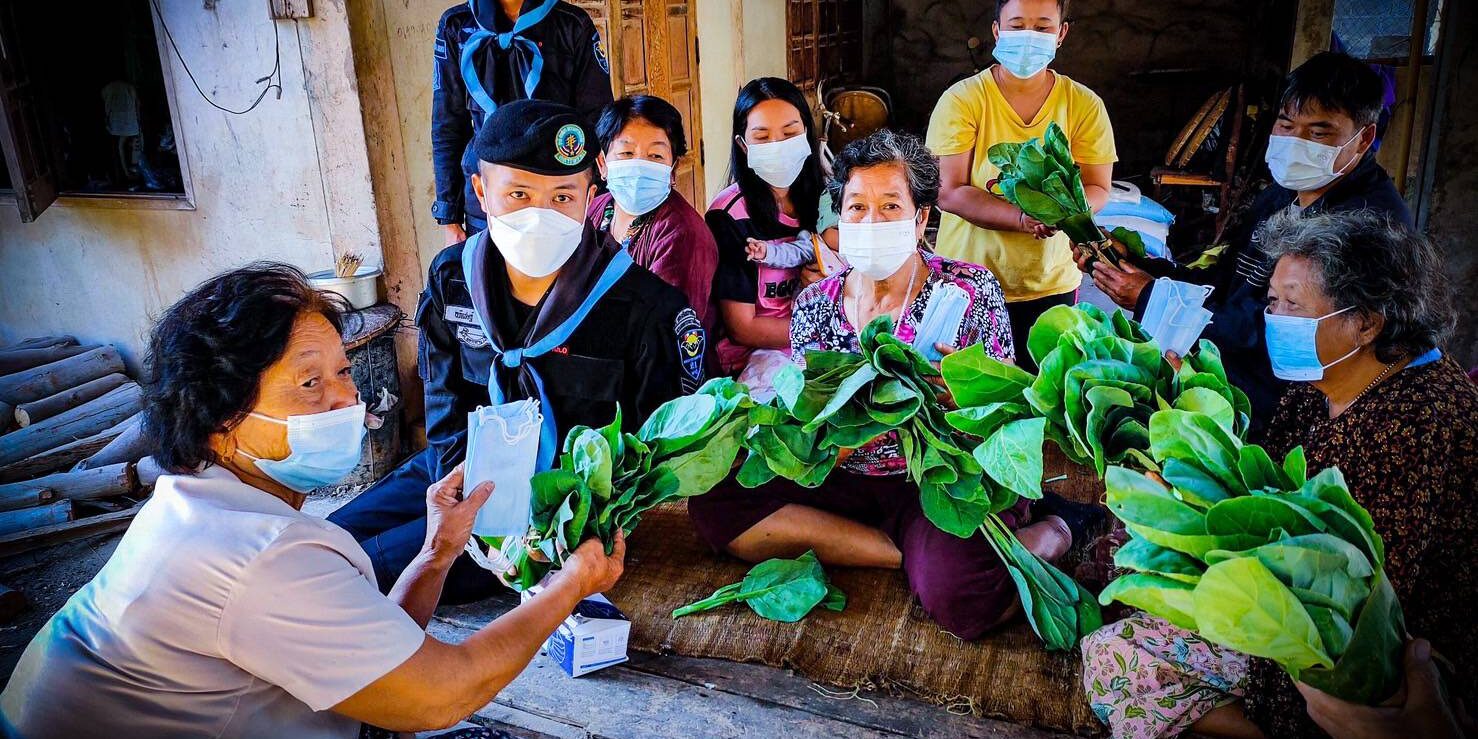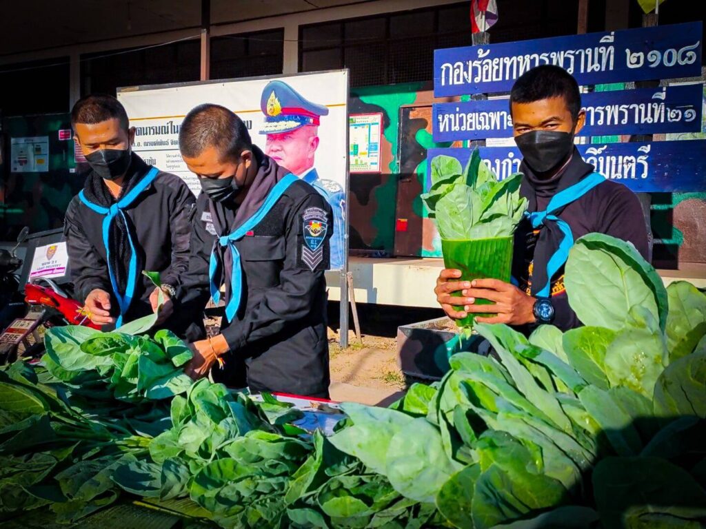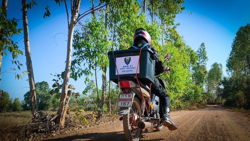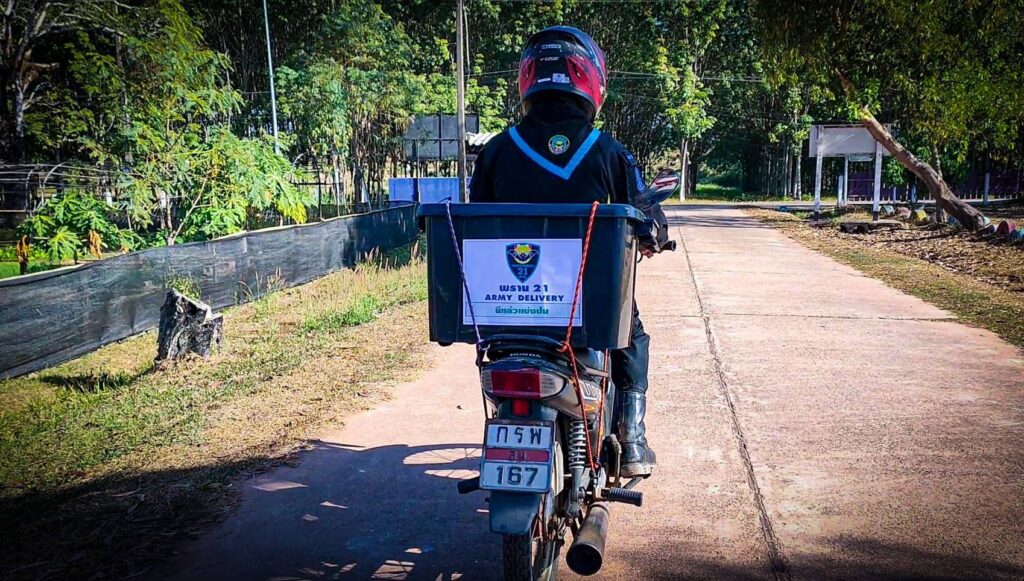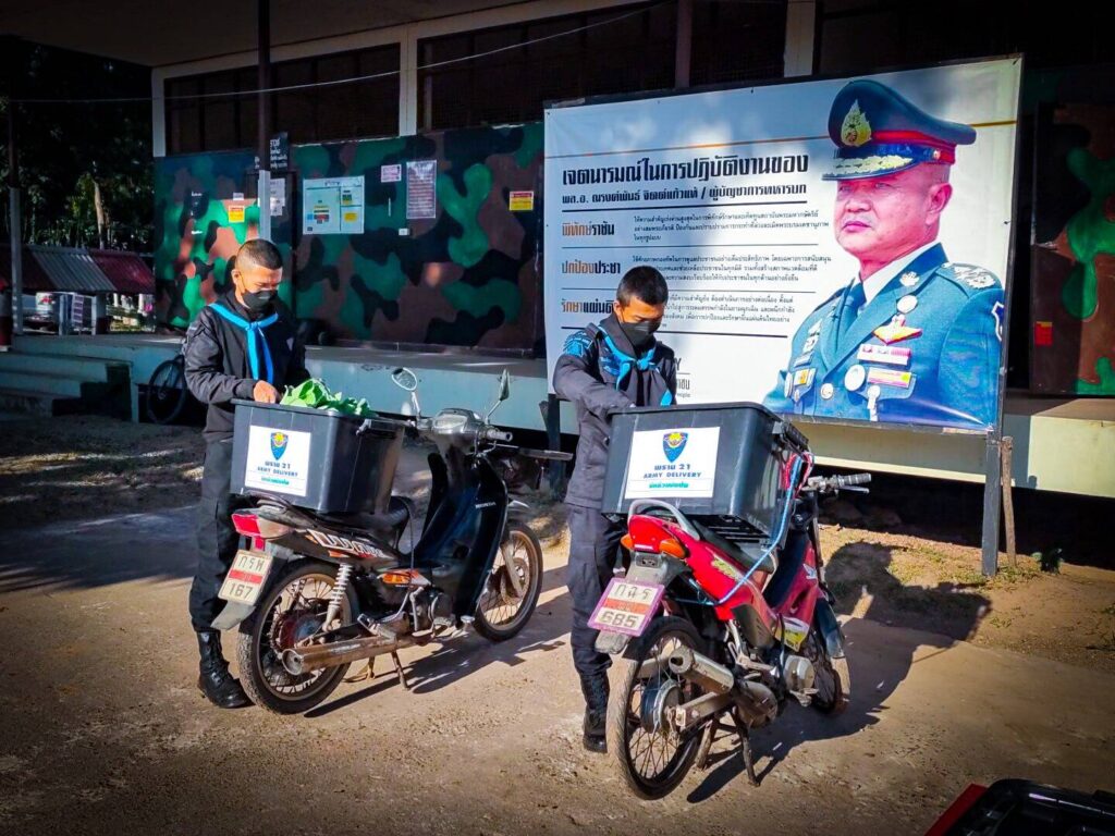 กองกำลังสุรศักดิ์มนตรี โดย หน่วยเฉพาะกิจกรมทหารพรานที่ 21 จัดชุดปฏิบัติการ “Army Delivery พราน 21 มีแล้วแบ่งปัน” เข้ามอบผักให้กับประชาชน พร้อมหน้ากากอนามัย (แมส) ให้กับประชาชนผู้ยากไร้,คนแก่ชราไร้ที่พึ่งที่มีฐานะยากจน ในพื้นที่ห่างไกลตามแนวชายแดนตามแม่น้ำโขง ตามมาตรการการช่วยเหลือประชาชนในช่วงโควิด-19 สนองตอบนโยบายกองทัพบกอย่างต่อเนื่องตามศักยภาพของหน่วย ในพื้นที่ ต.ไผ่ล้อม ต.นาเข อ.บ้านแพง จ.นครพนม โดยเป็นการเก็บผลผลิตทางการเกษตรที่มีอยู่ ภายในศูนย์เกษตรทฤษฎีใหม่ของกองร้อยทหารพรานที่ 2108 ที่ในช่วงฤดูหนาวผักจะเจริญเติบโตได้เป็นอย่างดี จึงให้กำลังพลเก็บผักปลอดสารพิษมัดเป็นกำโดยใช้ใบตองกล้วยห่อแล้วใช้เชือกกล้วยที่เป็นวัสดุธรรมชาติมัดเป็นกำๆเป็นการลดการใช้ถุงพาสติกลดโลกร้อนโดยได้นำผักที่เก็บใส่ในกล่อง Army Delivery พราน 21 มีแล้วแบ่งปัน พร้อมทั้งหน้ากากอนามัย ติดท้ายรถจักรยานยนต์เดินทางออกมอบให้กับประชาชนผู้ยากไร้,คนแก่ชราไร้ที่พึ่งที่มีฐานะยากจน ในพื้นที่ห่างไกลตามแนวชายแดนตามแม่น้ำโขง ที่ได้รับผลกระทบจากสถานการณ์แพร่ระบาดของโรคติดเชื้อไวรัสโคโรน่า 2019 (Covid -19) เพื่อเป็นการช่วยเหลือประชาชนเนื่องจากราคาสินค้าเกษตรโดยเฉพาะผักที่มีราคาสูง พร้อมทั้งให้ประชาชนได้รับประทานผักปลอดสารพิษ และเป็นการลดภาระค่าใช้จ่ายภายในครอบครัว