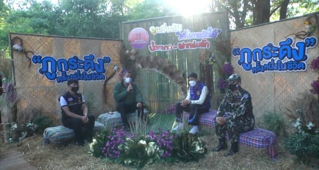 นายสืบพงษ์ นิ่มพูลสวัสดิ์ รองผู้ว่าราชการจังหวัดเพชรบูรณ์ กล่าวว่า จังหวัดเพชรบูรณ์มีความพร้อมในทุกด้าน ในการต้อนรับนักท่องเที่ยว เรามีการฉีดวัคซีนภาคบริการ ไม่ว่าจะเป็นโรงแรม ปั้มน้ำมัน และสถานที่ท่องเที่ยวในจังหวัดทุกแห่งมีความพร้อม และจังหวัดเพชรบูรณ์ยังได้กำชับในเรื่องของราคาสินค้าและคุณภาพด้วย สำหรับผู้ที่จะเดินทางมาท่องเที่ยวจังหวัดเพชรบูรณ์จะต้องฉีดวัคซีน ตามที่กระทรวงสาธารณสุขได้กำหนด หากใครไม่ได้ฉีดวัคซีนมาในบางที่ก็จะมีการตรวจ ATK แต่ในส่วนนี้นักท่องเที่ยวต้องรับผิดชอบค่าใช้จ่าย และหากนักท่องเที่ยวอยากมาสัมผัสอากาศที่หนาวเย็น ธรรมชาติที่สวยงาม และเงียบสงบ ก็สามารถมาท่องเที่ยวที่อำเภอน้ำหนาวได้ อย่างเช่น กิจกรรมในวันนี้ เป็นการเดินขึ้นภูกระดึง เป็นความท้าทาย และเป็นเส้นทางใหม่ที่หลายท่านยังไม่เคยมา จังหวัดเพชรบูรณ์เรามีแหล่งท่องเที่ยวมากมาย มีเสน่ห์ในเรื่องของอากาศ เรื่องของธรรมชาติ จึงอยากเชิญชวนให้นักท่องที่ยวได้มาเที่ยวกัน