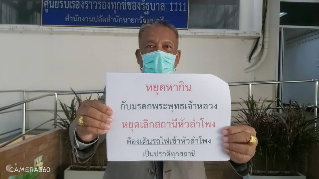 ตนได้รับเรื่องร้องเรียนจากอาจารย์ ชัยฤทธิ์ ลีลาเกรียงศักดิ์ ผู้พิพากษาอาวุโสบำนาญ ในฐานะผู้ใช้รถไฟสายใต้ รวมทั้งประชาชนชาวเหนือและอีสานนับล้านคนที่จะได้รับผลกระทบด้านความไม่สะดวกอย่างมากและค่าใช้จ่ายที่สูงขึ้นมากจากการยกเลิกการใช้สถานีรถไฟหัวลำโพงและหยุดให้บริการรับส่งผู้โดยสารรถไฟดังกล่าว ซึ่งเป็นการจำกัดการเดินทางของประชาชนให้ต้องใช้บริการรถไฟฟ้าสายสีน้ำเงินและสายสีแดงแทน เพื่อเดินทางไปทำงานได้ทันเวลาในแต่ละวัน อีกทั้งเป็นการขัดต่อพระราชปณิธานของรัชกาลที่ 5 ที่ทรงวางรากฐานการรถไฟไว้เป็นการคมนาคมสำหรับประชาชนคนยากจนทั้งประเทศ ดังนั้น เพื่อแก้ไขปัญหาให้กับประชาชน จึงขอให้นายกรัฐมรนตรีในฐานะจบจากโรงเรียนนายร้อยจปร.ที่จะรักษาแผ่นดินและมรดกของพระองค์ท่านไว้ด้วยชีวิต ได้พิจารณายกเลิกนโยบายการปิดสถานีรถไฟหัวลำโพง ยกเลิกการให้เอกชน(นายทุน)เข้ามาพัฒนาพื้นที่เชิงพาณิชย์และยกเลิกเปิดสัมปทานให้ภาคเอกชนของการรถไฟแห่งประเทศไทย (รฟท.) ภายใต้การกำกับดูแลของนายศักดิ์สยาม ชิดชอบ รัฐมนตรีว่าการกระทรวงคมนาคมด้วยมีมา