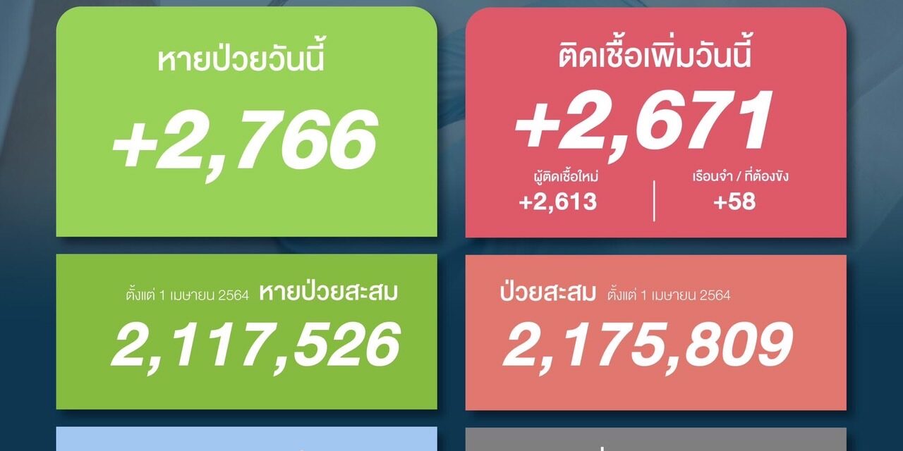 หายป่วยสะสม 2,117,526 ราย (ตั้งแต่ 1 เมษายน)