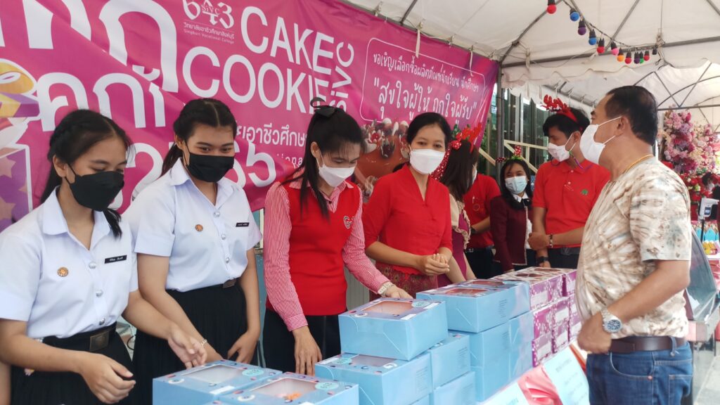 วันศุกร์ที่ 24 ธันวาคม 2564 ดร.ธีระพงษ์ วงศ์ประเสริฐ ผู้อำนวยการวิทยาลัยอาชีวศึกษาจังหวัดสิงห์บุรี เป็นประธานเปิดกิจกรรมผลิตและจำหน่ายเค้ก คุกกี้ ในเทศกาลปีใหม่ 2565 และโครงการพัฒนาศักยภาพภายใต้ศูนย์บ่มเพาะ ร้านกาแฟ 643 kofe ณ หน้าวิทยาลัยอาชีวศึกษาสิงห์บุรี โดย นางสาวสายฝน แซ่จู หัวหน้างานส่งเสริมผลิตผลการค้าและประกอบธุรกิจคณะกรรมการดำเนินงานตามที่รัฐบาลมีนโยบายในการส่งเสริมให้เกิดผู้ประกอบการใหม่เพิ่มขึ้นเพื่อเป็นรากฐานสำคัญทางเศรษฐกิจอันจะนำไปสู่การพัฒนาด้านต่างๆของประเทศโดยเร่งรัดการดำเนินการที่เป็นรูปธรรม อาทิ สตาร์ทอัพไทยแลนด์ ซึ่งเป็นกิจกรรมที่ส่งเสริมให้ผู้ประกอบการรายใหม่ได้นำเสนอนวัตกรรมของสินค้าหรือบริการที่มีความน่าสนใจและมีความเป็นไปได้ในการต่อยอดไปสู่เชิงพาณิชย์อย่างเต็มรูปแบบ
