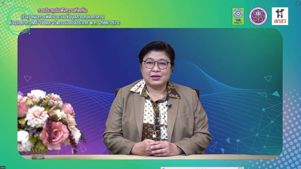 ดร.วิภารัตน์ ดีอ่อง ผู้อำนวยการสำนักงานการวิจัยแห่งชาติ (วช.) กล่าวว่า (วช.) ภายใต้ กระทรวง (อว.) มีการดำเนินงานพัฒนาระบบข้อมูลสารสนเทศกลางด้าน (ววน.) มาอย่างต่อเนื่อง และจัดให้มีระบบข้อมูลสารสนเทศกลางเพื่อเชื่อมโยงข้อมูลการวิจัยและนวัตกรรมระดับนานาชาติกับระบบสารสนเทศของหน่วยงานในระบบวิจัยและนวัตกรรม ด้วยความร่วมมือของหน่วยงานในระบบวิจัยและนวัตกรรม ในการพัฒนาระบบข้อมูลสารสนเทศวิจัยและนวัตกรรมแห่งชาติ หรือ ระบบ NRIIS ซึ่งเป็นระบบสารสนเทศกลางด้านวิจัยและนวัตกรรมของประเทศ เพื่อใช้ในการบริหารจัดการงานวิจัย และเป็นฐานข้อมูลกลางด้านวิจัยและนวัตกรรมของประเทศ เพื่อให้การดำเนินงานพัฒนาระบบข้อมูลด้าน (ววน.) มีแนวทางที่ชัดเจน ครอบคลุมและสอดคล้องกับแผนด้านวิทยาศาสตร์ วิจัยและนวัตกรรม รวมทั้งใช้เป็นแนวทางให้หน่วยงานในระบบวิจัย และนวัตกรรม นำไปใช้ในการปฏิบัติ ในการเชื่อมโยงข้อมูลด้าน (ววน.) เป็นไปอย่างมีประสิทธิภาพ และมีระบบข้อมูลสารสนเทศกลางด้าน (ววน.) ที่สมบูรณ์และครบถ้วน ดังนั้น (วช.) จึงจัดการประชุมรับฟังความคิดเห็นและข้อเสนอแนะจากผู้ที่เกี่ยวข้อง เพื่อนำไปเป็นข้อมูลและประเด็นสำคัญในการจัดทำแผนการพัฒนาระบบข้อมูลสารสนเทศกลางด้านวิทยาศาสตร์ วิจัยและนวัตกรรมของประเทศ พ.ศ. 2566-2570 และพัฒนายกระดับระบบข้อมูลสารสนเทศกลางด้าน (ววน.) ของประเทศ เพื่อให้เกิดการเชื่อมโยงของระบบการบริหารจัดการข้อมูลและฐานข้อมูลด้าน (ววน.) ได้อย่างสมบูรณ์ ผู้มีส่วนร่วมทุกภาคส่วนสามารถใช้ประโยชน์จากระบบดังกล่าวได้อย่างมีประสิทธิภาพและเกิดผลสัมฤทธิ์ต่อไป