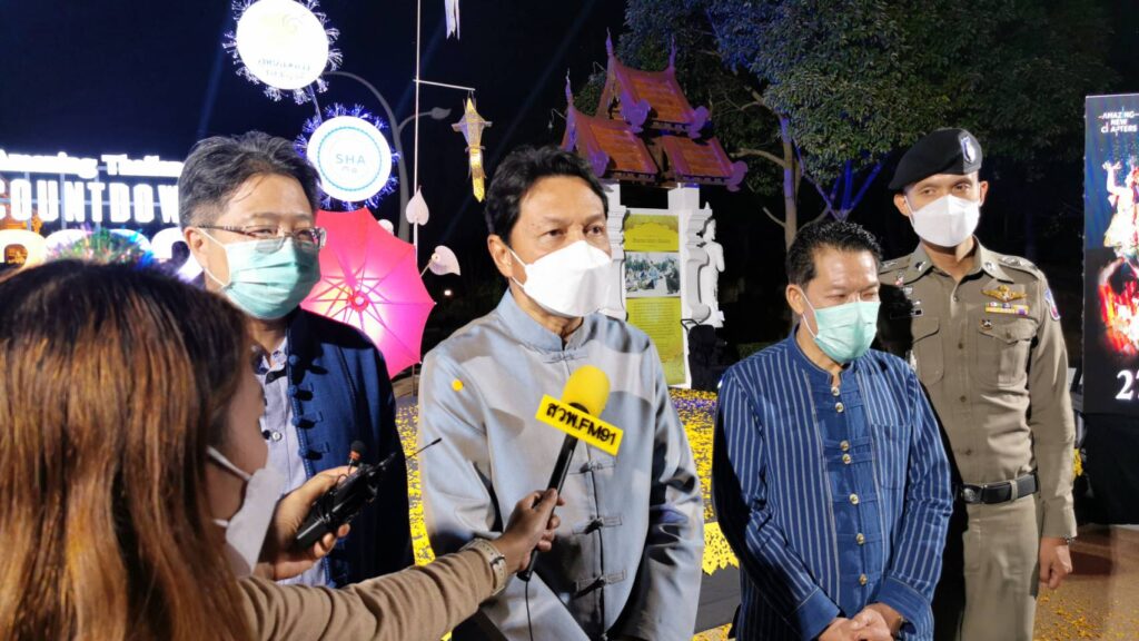 นายธเนศวร์ เพชรสุวรรณ รองผู้ว่าการด้านตลาดเอเชียและแปซิฟิกใต้ การท่องเที่ยวแห่งประเทศไทย (ททท.) พร้อมด้วย นางสาวพิชญากานต์ หน่อแก้วมูล ผู้แทนอุทยานหลวงราชพ , พล.ต.ต. ปชา รัตนพันธ์ นายกสมาคมธุรกิจท่องเที่ยวจังหวัดเชียงใหม่ และ นายศักดิ์พล ยอดบางเตย ผู้แทนกองทุน We Love Chiang Mai ร่วมกันเปิดงาน Amazing Thailand Countdown 2022 @ chiang Mai ที่จะจัดขึ้นระหว่างวันที่ 27 – 31 ธันวาคม 2564 ณ อุทยานหลวงราชพฤกษ์ (หอคำหลวง) จังหวัดเชียงใหม่ ด้วยแนวคิด Magical Night