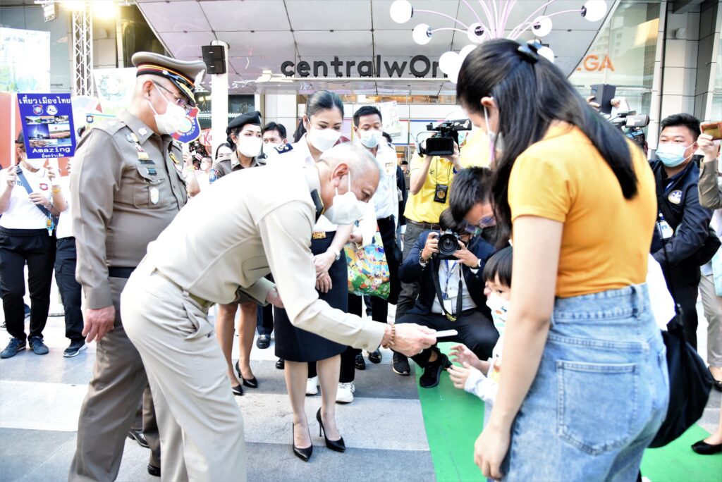 วันที่ 27 ธ.ค.64 เวลา 16.30 น.กองบัญชาการตำรวจท่องเที่ยวร่วมกับการท่องเที่ยวแห่งประเทศไทย ได้จัดพิธีปล่อยแถว สร้างความเชื่อมั่นด้านความปลอดภัยด้านการท่องเที่ยววิถีใหม่ (New Year New Normal 2022) ณ ลานหน้าศูนย์การค้าเซ็นทรัลเวิลด์ ถนนพระราม 1 แขวงปทุมวัน เขตปทุมวัน กทม. และการตรวจเยี่ยมมาตรการดูแลคัดกรองประชาชนที่มาใช้บริการห้างสรรพสินค้าเซ็นทรัลเวิร์ล พร้อมตรวจเยี่ยมข้าราชการตำรวจ เจ้าหน้าที่รักษาความปลอดภัยที่ปฏิบัติหน้าที่ ดูแลนักท่องเที่ยวและประชาชนในห้วงการระบาดของโรคโควิด-19 ทุกสายพันธ์ โดยมีนายพิพัฒน์ รัชกิจประการ รัฐมนตรีว่าการกระทรวงท่องเที่ยวและกีฬา ให้เกียรติเป็นประธานในพิธี