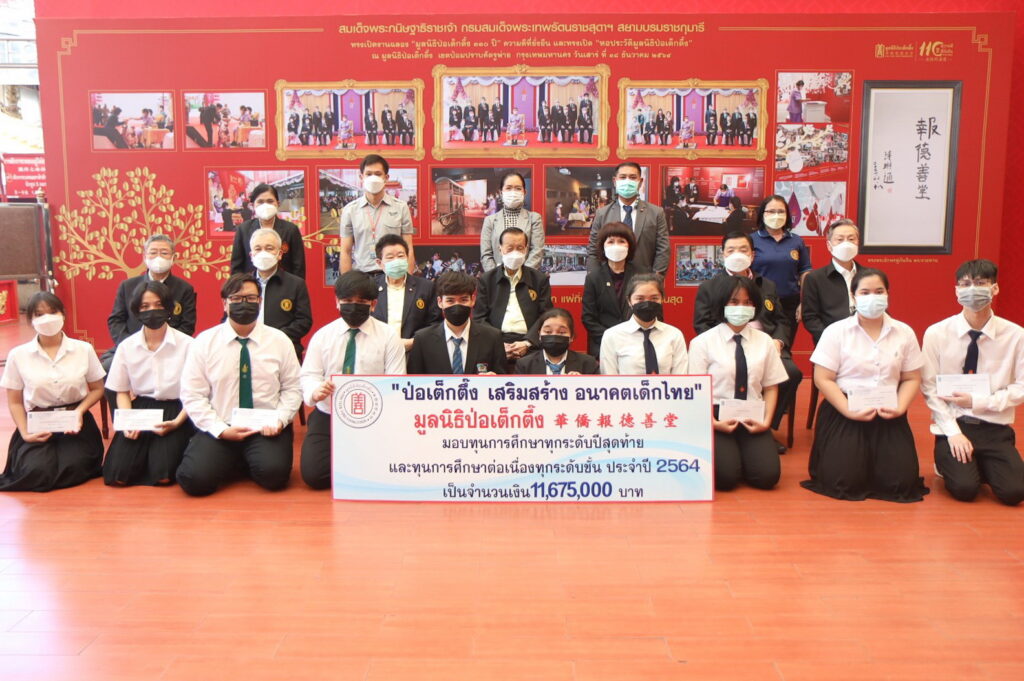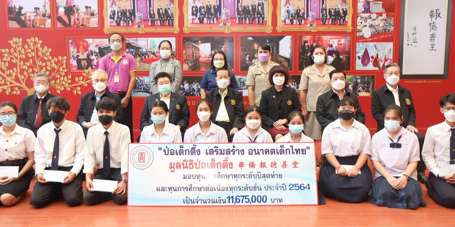วันนี้ (วันจันทร์ที่ 27 ธันวาคม พ.ศ. 2564) เวลา 10.00 น. มูลนิธิป่อเต็กตึ๊ง โดย นายวิเชียร เตชะไพบูลย์ ประธานกรรมการมูลนิธิฯ เป็นประธานในพิธี พร้อมด้วยนายสัก กอแสงเรือง รองประธานกรรมการ นางศิริกุล โอภาสวงศ์ กรรมการและเลขาธิการ และคณะกรรมการมูลนิธิฯ ร่วมในพิธีมอบเงินทุนต่อเนื่องในทุกระดับชั้น และทุนทุกระดับปีสุดท้ายแก่เยาวชนที่ประพฤติดีแต่ขาดแคลนทุนทรัพย์ในระดับชั้นมัธยมศึกษา อาชีวศึกษา และอุดมศึกษา รวม 119 สถาบัน จำนวน 836 ทุน รวมเป็นเงินทั้งสิ้น 11,675,000 บาท (สิบเอ็ดล้านหกแสนเจ็ดหมื่นห้าพันบาทถ้วน) เนื่องจากสถานการณ์การแพร่ระบาดของโรคติดเชื้อไวรัสโคโรนา 2019 (COVID-19) มูลนิธิฯ ได้จัดให้มีมาตรการการป้องกันการแพร่ระบาดของไวรัสภายในพื้นที่อย่างเข้มข้น รวมทั้งมีการปรับเปลี่ยนรูปแบบการมอบทุนฯ โดยประสานผู้แทนจากสถาบันการศึกษาแต่ละแห่ง เป็นตัวแทนรับมอบทุนการศึกษา ระหว่างวันที่ 27-29 ธันวาคม 64 ณ มูลนิธิป่อเต็กตึ๊ง พลับพลาไชย กรุงเทพฯ