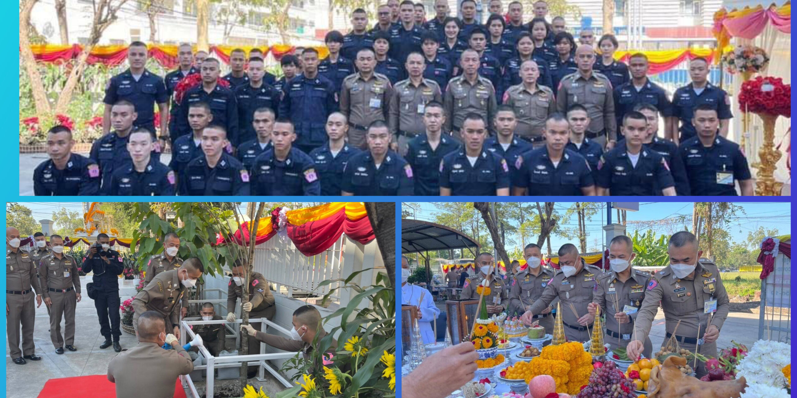 วันนี้ วันที่ 28 ธันวาคม 2564 เวลา 09.00 น. พล.ต.ท.สำราญ นวลมา ผบช.น. ให้เกียรติเป็นประธานในพิธีตั้งศาลพระภูมิ และ พิธีทำบุญเสริมสิริมงคล บก.อคฝ. พร้อมปลูกต้นประดู่แดง และ มอบเงินร่วมทำบุญ ในการนี้มี พล.ต.ต.นครินทร์ สุคนธวิท ผบก.อคฝ. พร้อม รองผบก.อคฝ. และ ผกก. นำ จนท.ตำรวจ ในสังกัด บก.อคฝ. รอให้การต้อนรับ ณ.กองบังคับการอารักขาและควบคุมฝูงชน